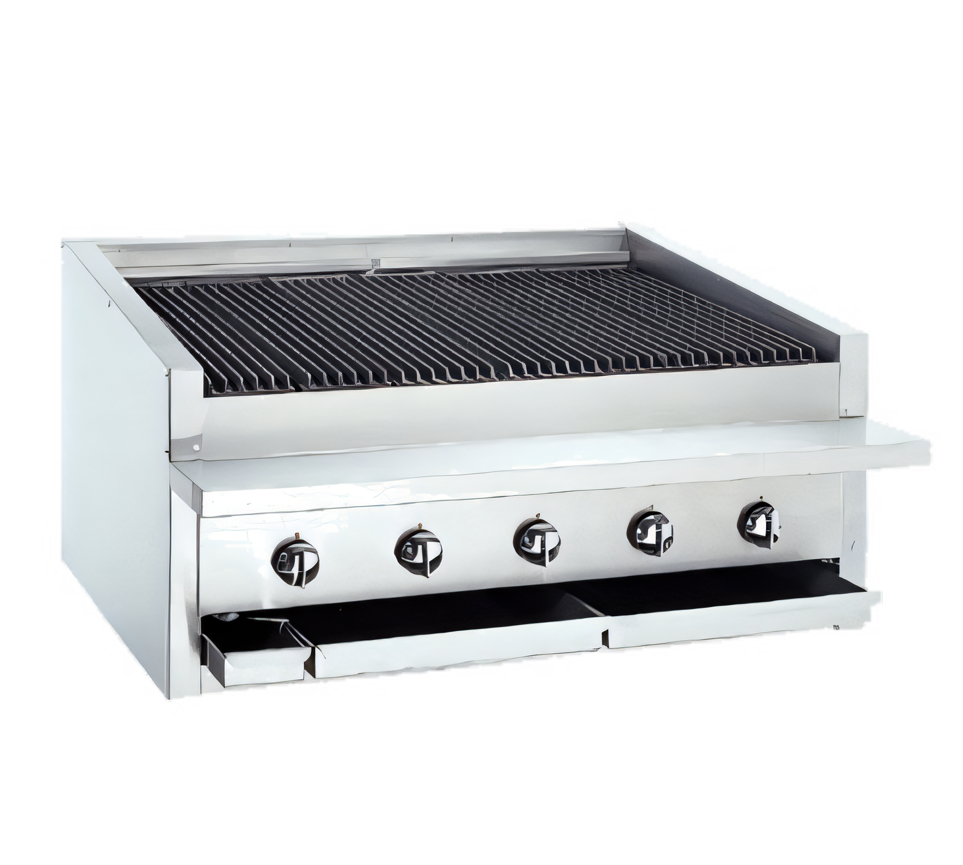 36" Dante Series gas charbroiler equipped with cast iron grates for superior heat retention and searing.