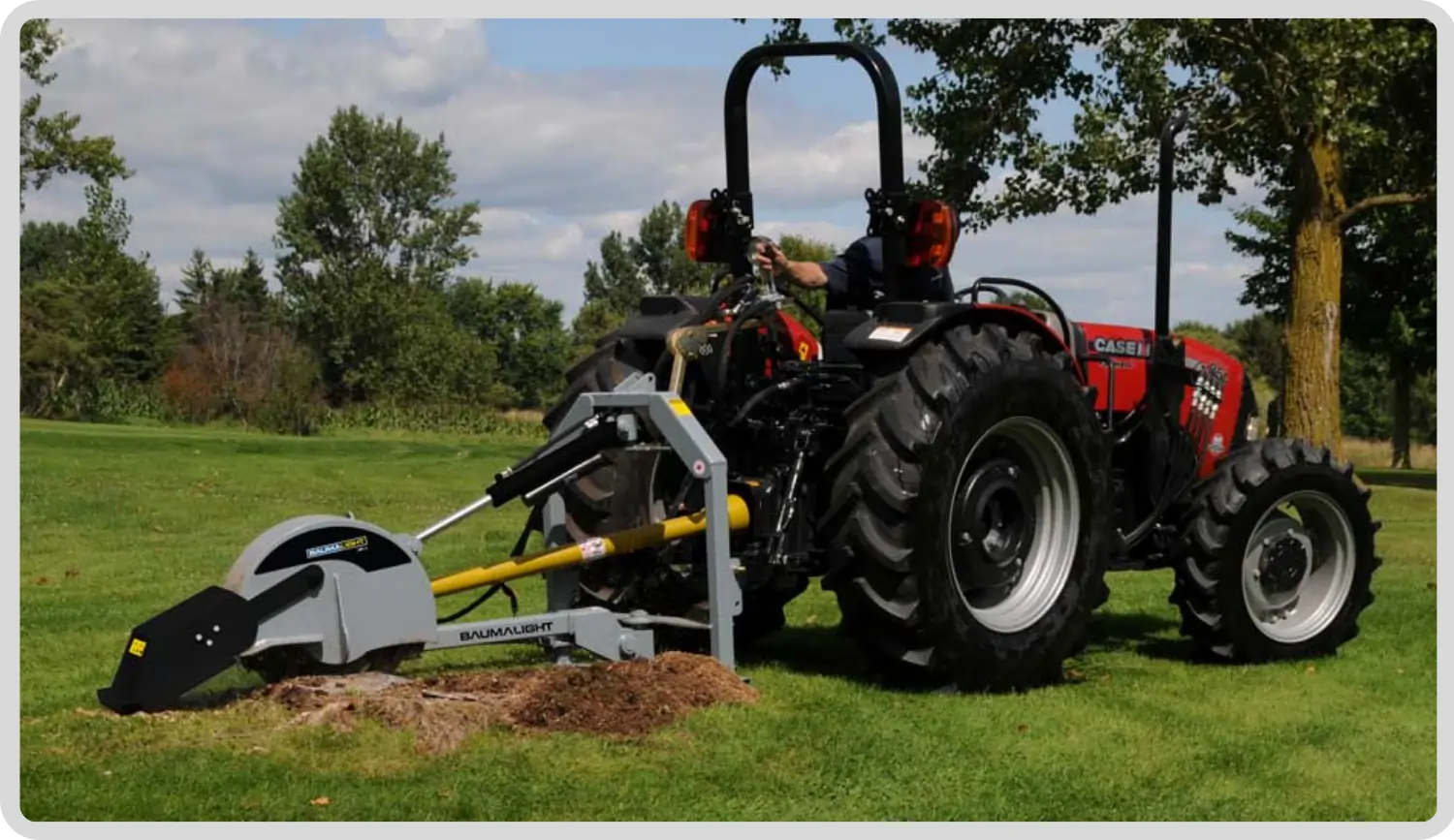 The Baumalight 3P24 PTO stump grinder stands as a pinnacle of efficiency and rugged strength, tailor-made for tractors equipped with a 30-50 HP motor. Designed to conquer even the most challenging stumps, this unit boasts a formidable 24-inch rotor with 34 replaceable carbide teeth, ensuring a cutting depth of 18 inches above ground and 8 inches below. Its powerful direct drive system, complemented by a heavy-duty gearbox, delivers a whopping 803 Ft-Lbs of torque, turning the rotor at 810 RPM to pulverize stumps into dust efficiently.