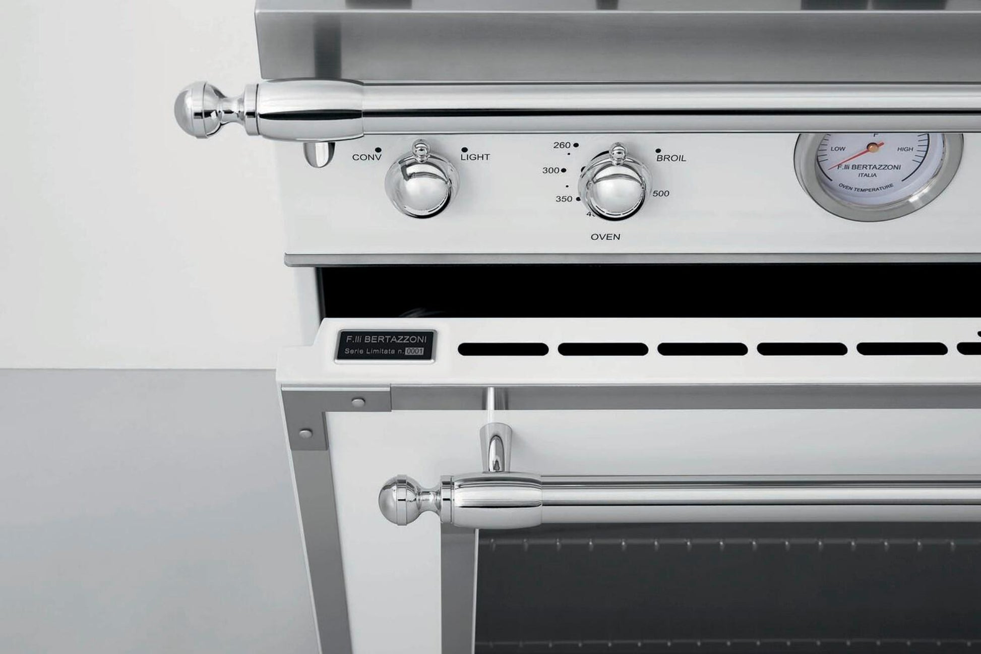 The oven offers a spacious 5.7 cu. ft. capacity, making it ideal for baking and roasting. Equipped with European convection, it ensures balanced airflow and even temperature distribution across seven shelf levels. The oven features a gas broiler with an extra-wide infrared gas broiler, suitable for high-heat grilling and searing. User-friendly features include smooth telescopic glides for oven shelves, soft-close doors, and an edge-to-edge interior oven glass door that maximizes interior volume and simplifies cleaning. The fingerprint-resistant finish on all knobs, handles, and stainless steel oven door surfaces makes cleaning a breeze. For aesthetic customization, the Collezione Metalli offers decorative details in three real metal finishes: Gold-plated, Copper-plated, and Black Nickel-plated. All Bertazzoni appliances come with a 2-year warranty, ensuring peace of mind with your purchase.