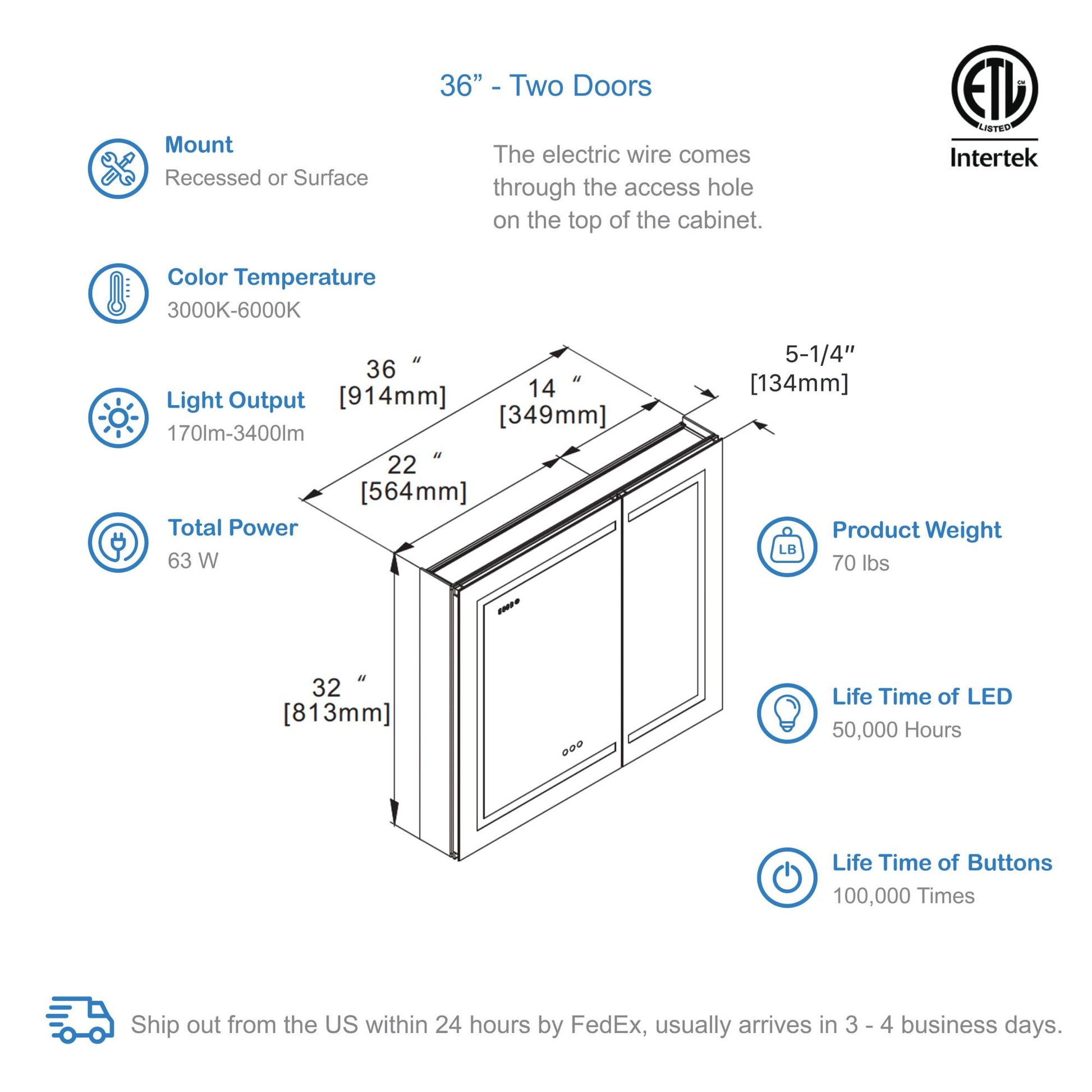 Fog-Free Mirror: Built-in defogger clears steam quickly, keeping reflections clear even in humid bathrooms.