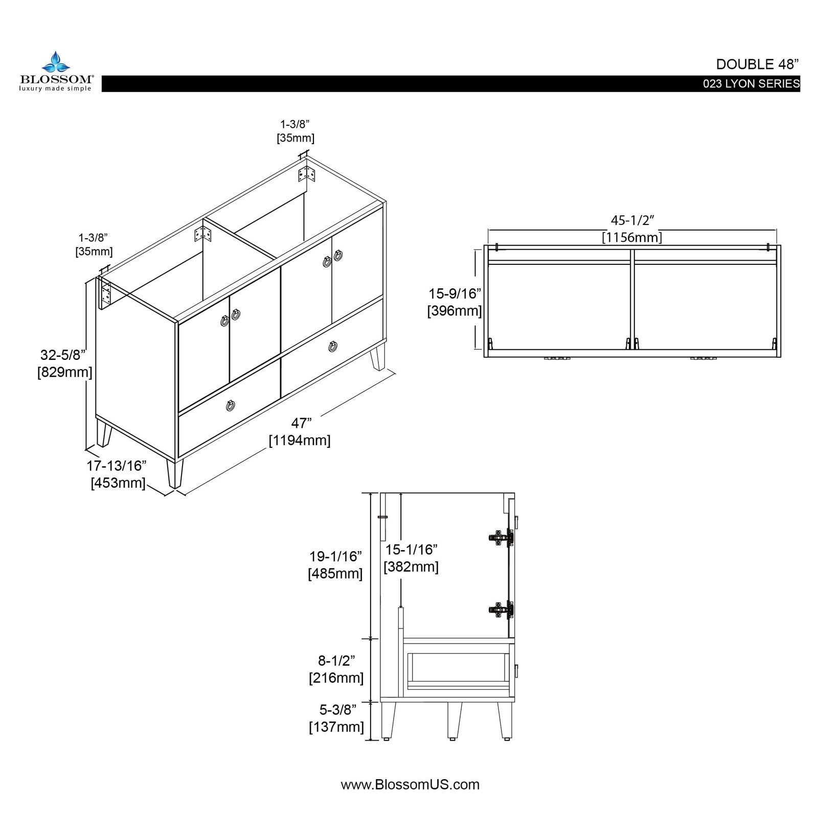 Blossom Lyon 48 Inch Bathroom Vanity – Double Sinks - V8023 48 01D