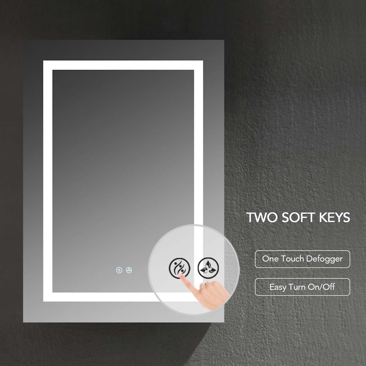 A: Soft-touch switches control the LED mirror light and the defogger.