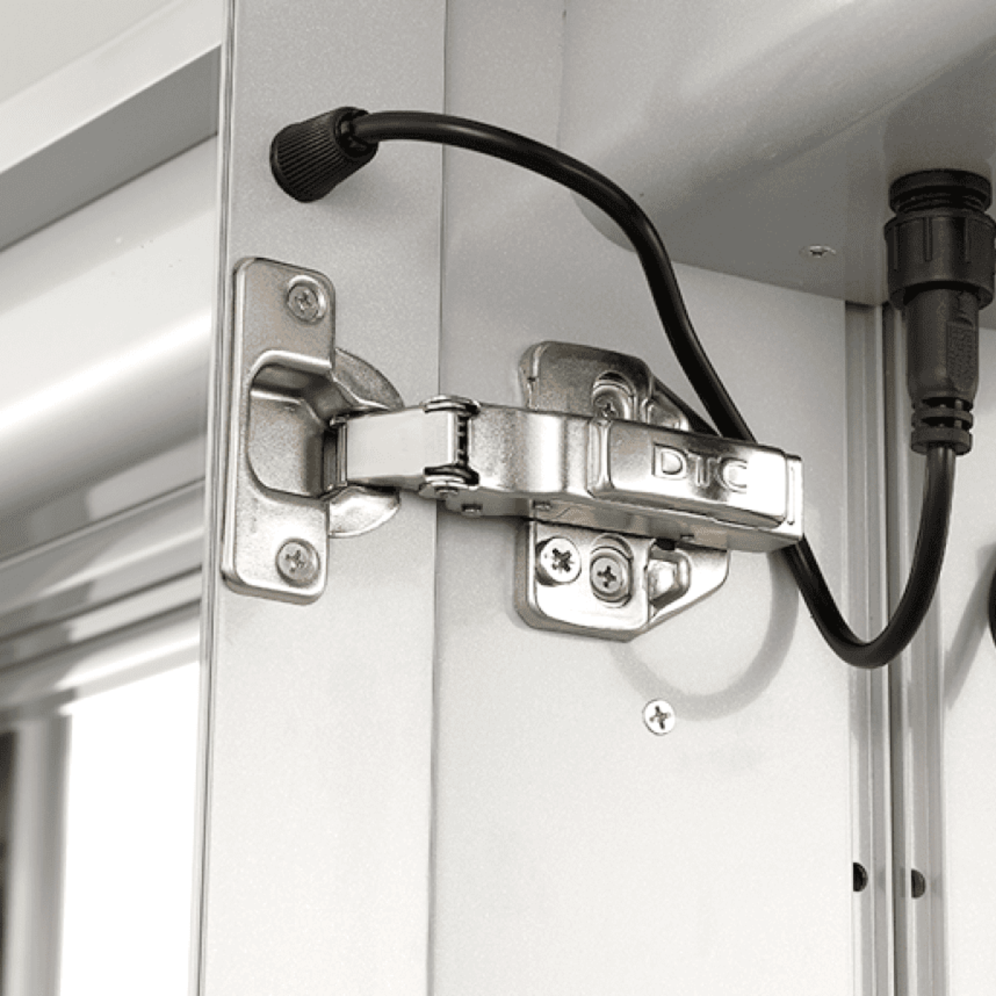 Interior LED lighting with door-sensor illuminates the cabinet when opened.