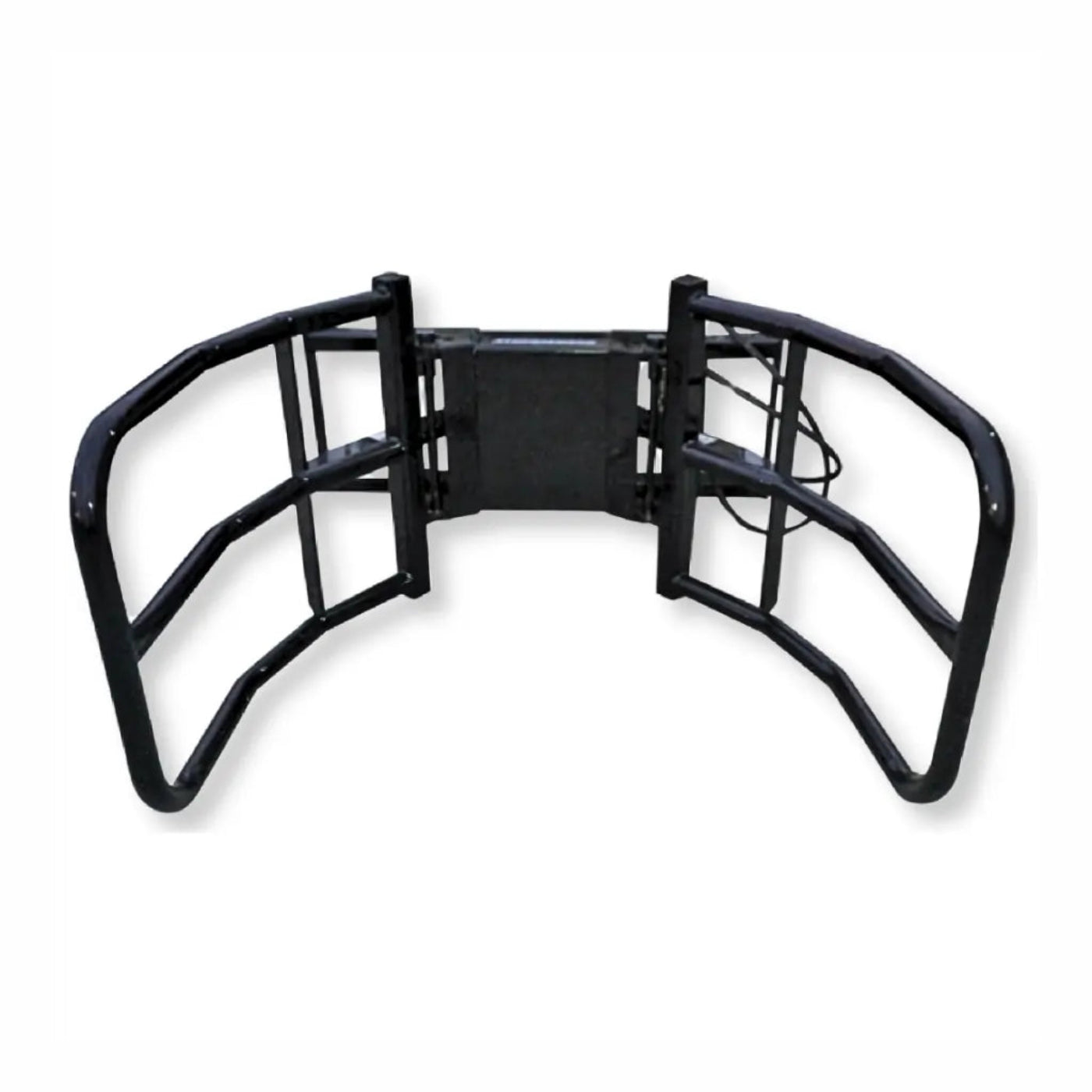 Effortlessly handle bales with the Blue Diamond Bale Squeeze, ideal for both skid steers and tractors. Its sturdy tubular design handles up to 60" hay bales, with an equalizer bar for stability and a wide 72" opening. This versatile attachment comes with hoses and flat-face couplers.