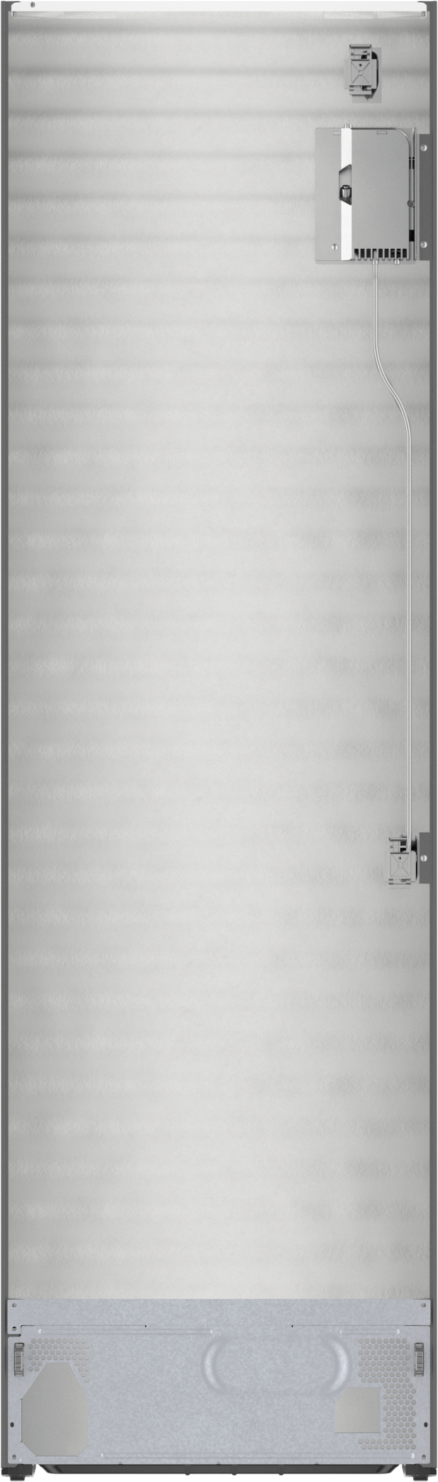 800 Series 24" free-standing fridge-freezer combines sleek black glass design with efficient storage.