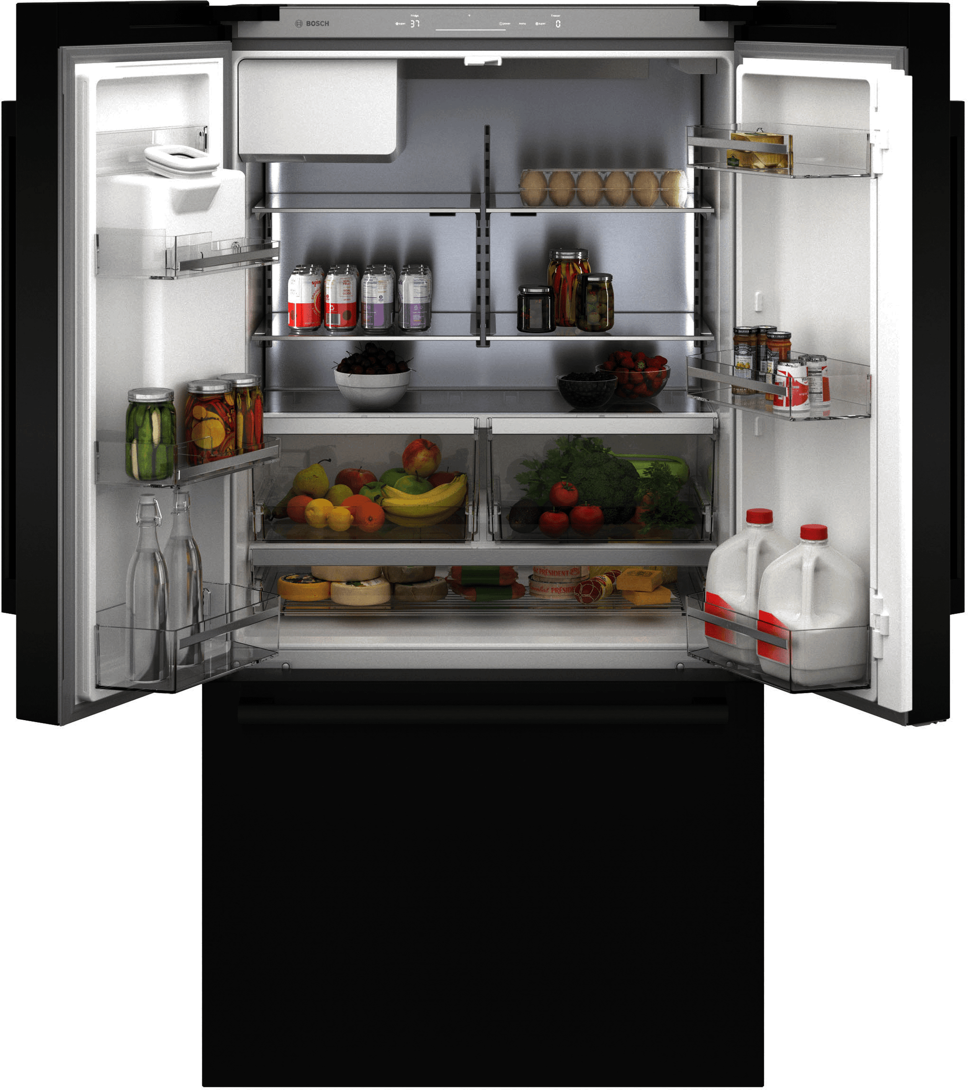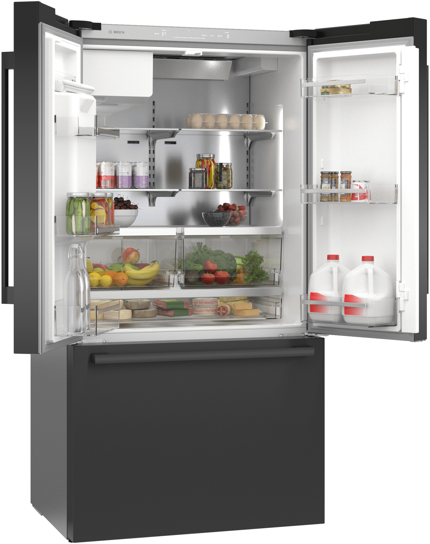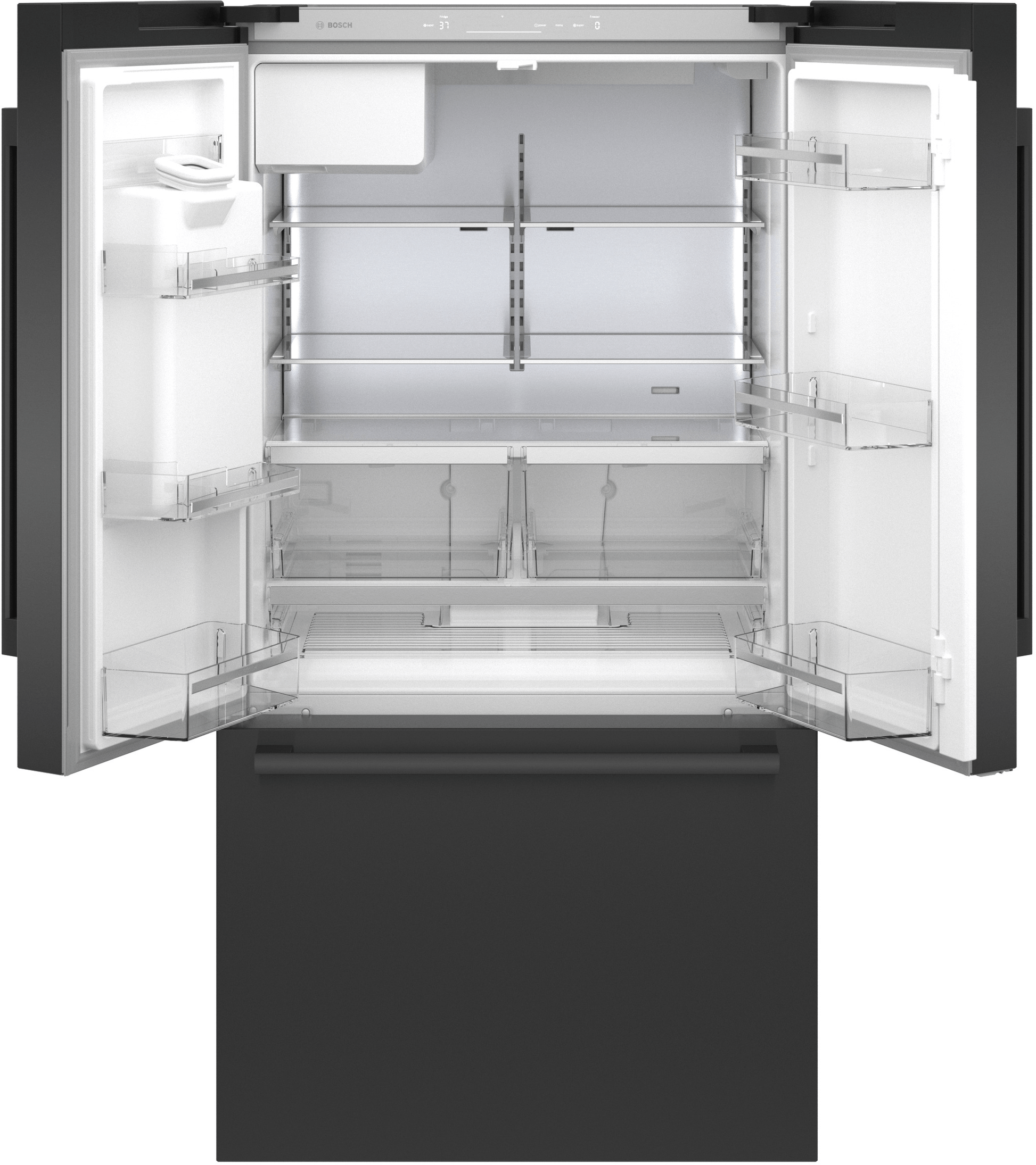 Bosch 500 Series 36" French Door Bottom Freezer combines high-performance refrigeration with sleek black inox anti-fingerprint finish.