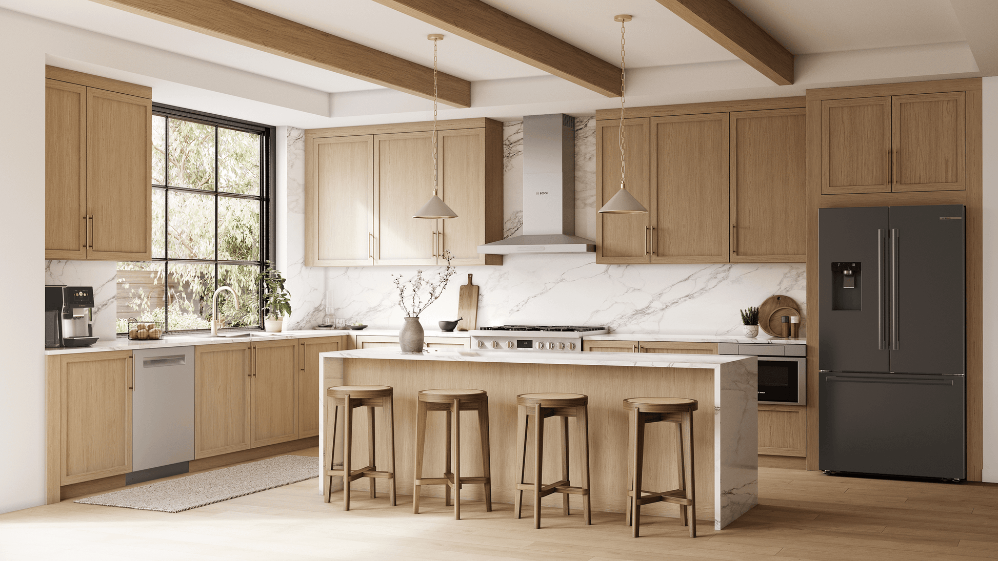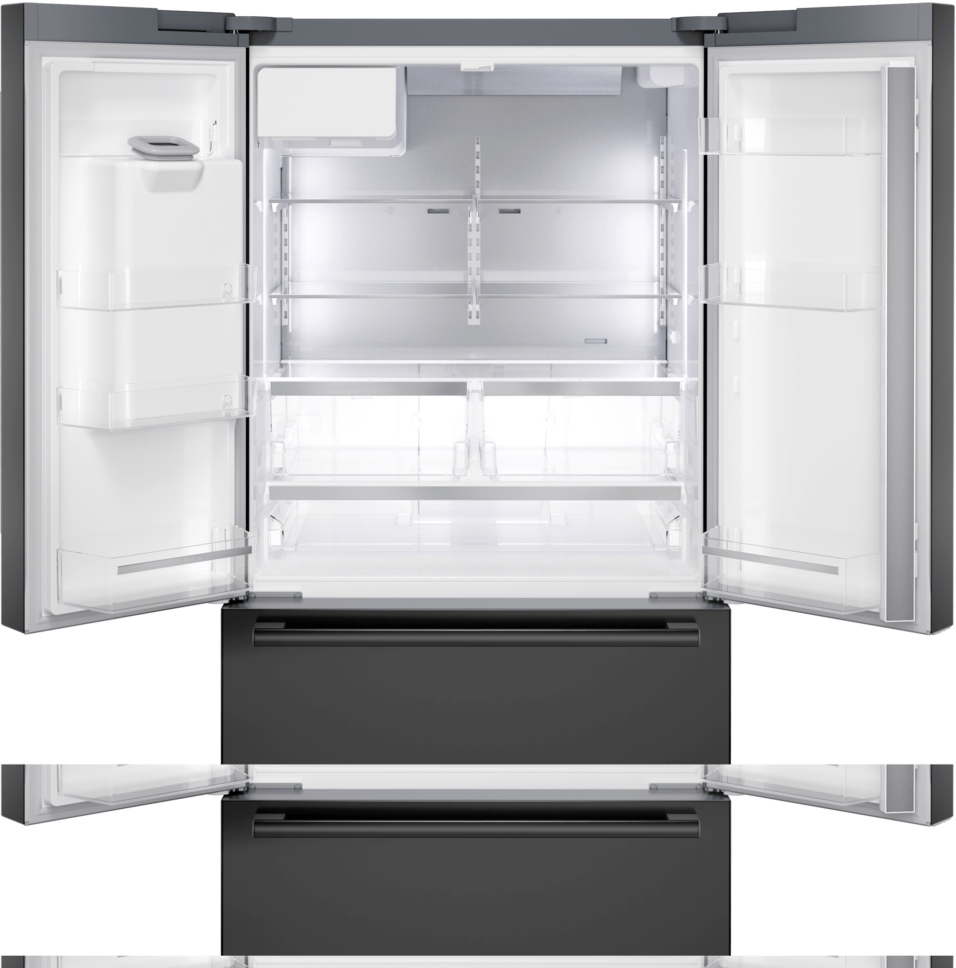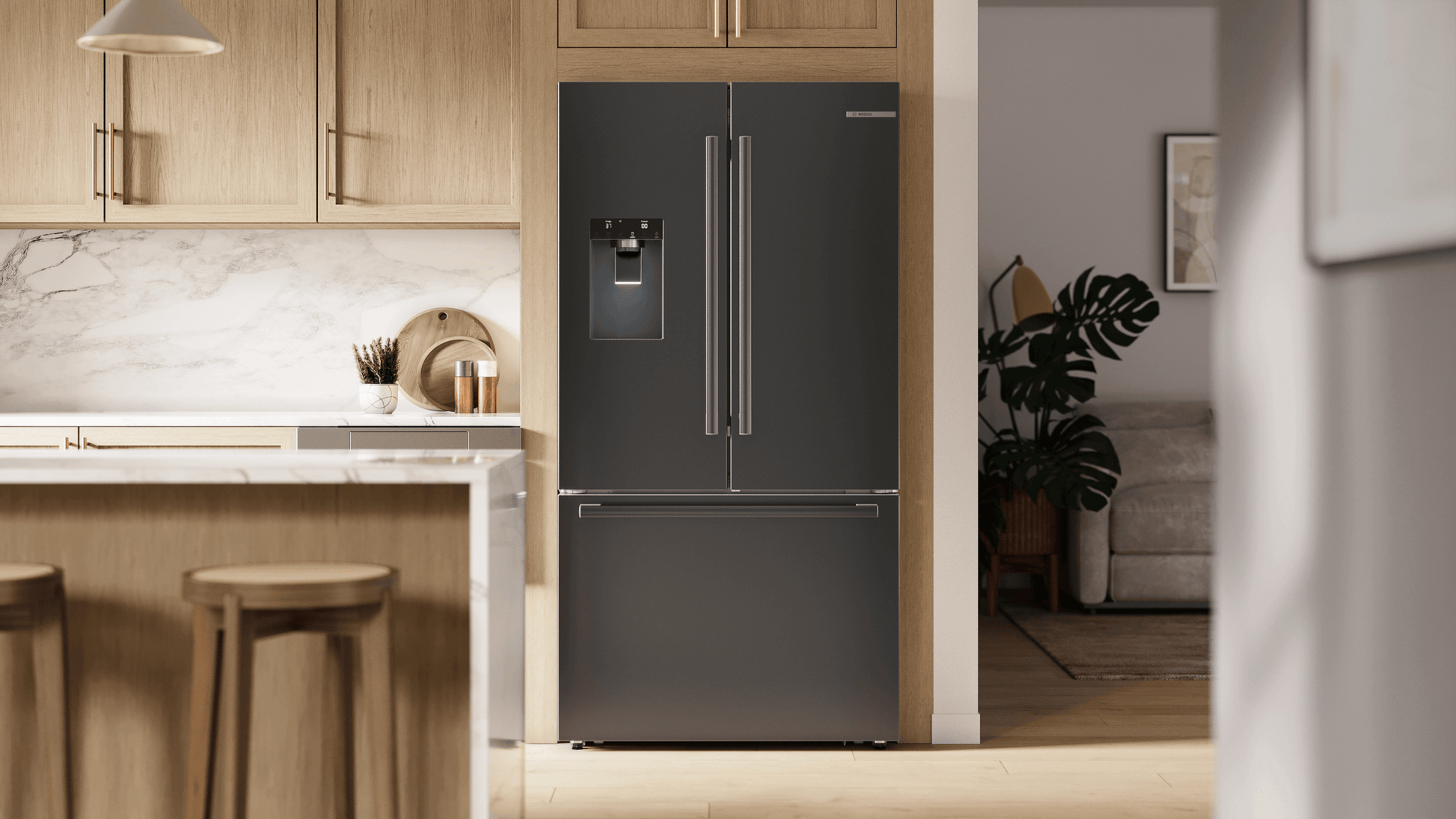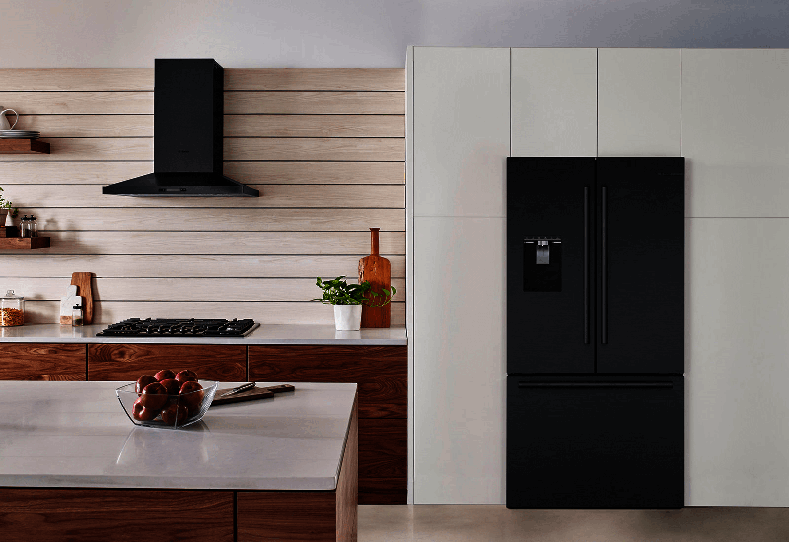 Bosch 500 Series 36" French Door Bottom Freezer combines high-performance refrigeration with sleek black inox anti-fingerprint finish.