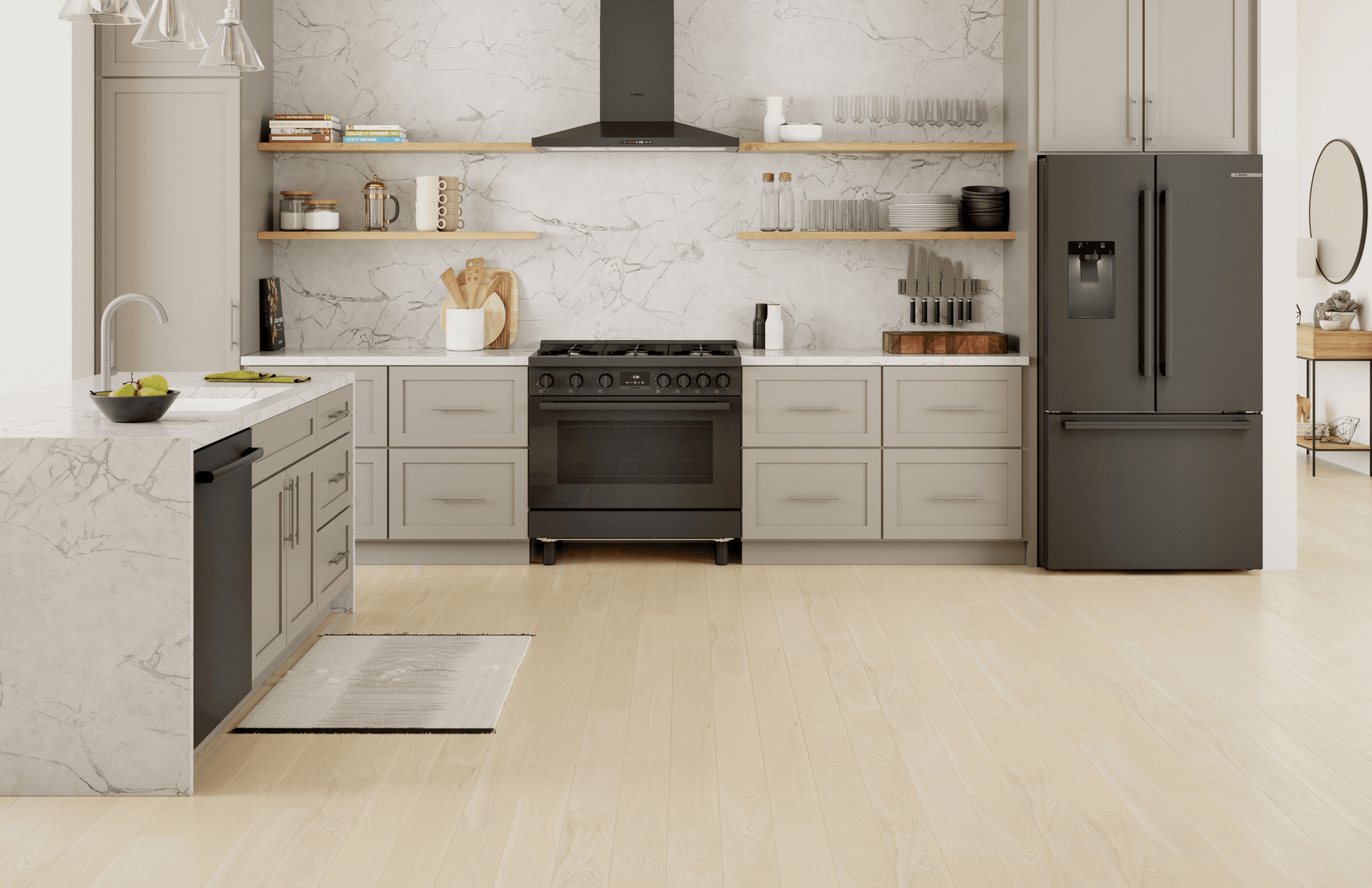 The Bosch B36FD52SNB refrigerator combines advanced technology with a sleek black stainless steel design, enhancing both functionality and aesthetics in your kitchen. Its QuickIce Pro System™ ensures fast and ample ice production, making it ideal for entertaining. The VitaFreshPlus™ drawers provide adjustable humidity settings, creating the optimal environment for fruits and vegetables, thereby extending their freshness. With Home Connect™, you can remotely monitor and control your refrigerator via a smartphone or tablet, offering convenience and peace of mind. The MultiAirFlow™ system maintains consistent temperatures throughout the unit by evenly circulating cool air, ensuring your food stays fresh longer. Additionally, the UltraClarityPro® water filter removes over 99.9% of sediments, including harsh elements like chlorine and chloramine, providing you with clean and fresh-tasting water.