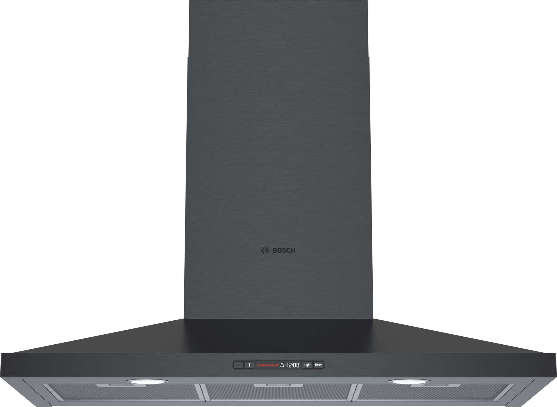 Bosch 800 Series 36" wall-mounted cooker hood delivers powerful and efficient ventilation with a modern black stainless steel finish.
