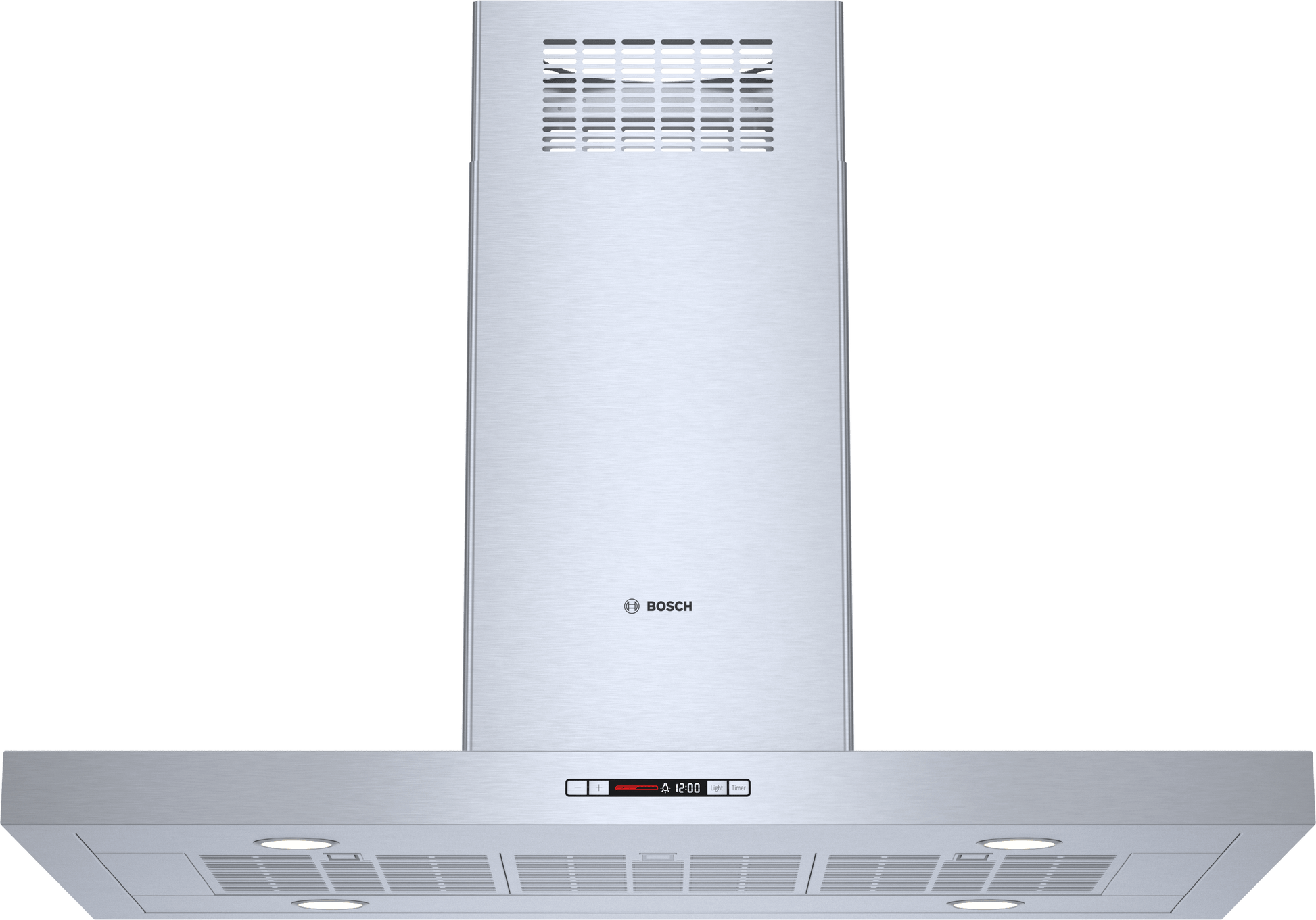 Bosch 800 Series 42" island cooker hood delivers powerful, efficient ventilation for open kitchens.