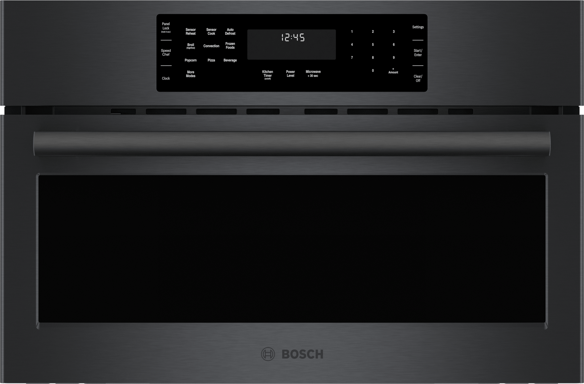 The Bosch HMC80242UC 800 Series 30-inch built-in speed oven is engineered for convenience, efficiency, and style. This appliance functions as both a microwave and a convection oven, providing flexibility for various cooking tasks. The convection mode delivers even heat distribution, ideal for baking, roasting, and crisping, while the microwave mode ensures quick reheating and cooking. The SpeedChef® function simplifies cooking with pre-programmed settings for commonly prepared foods.