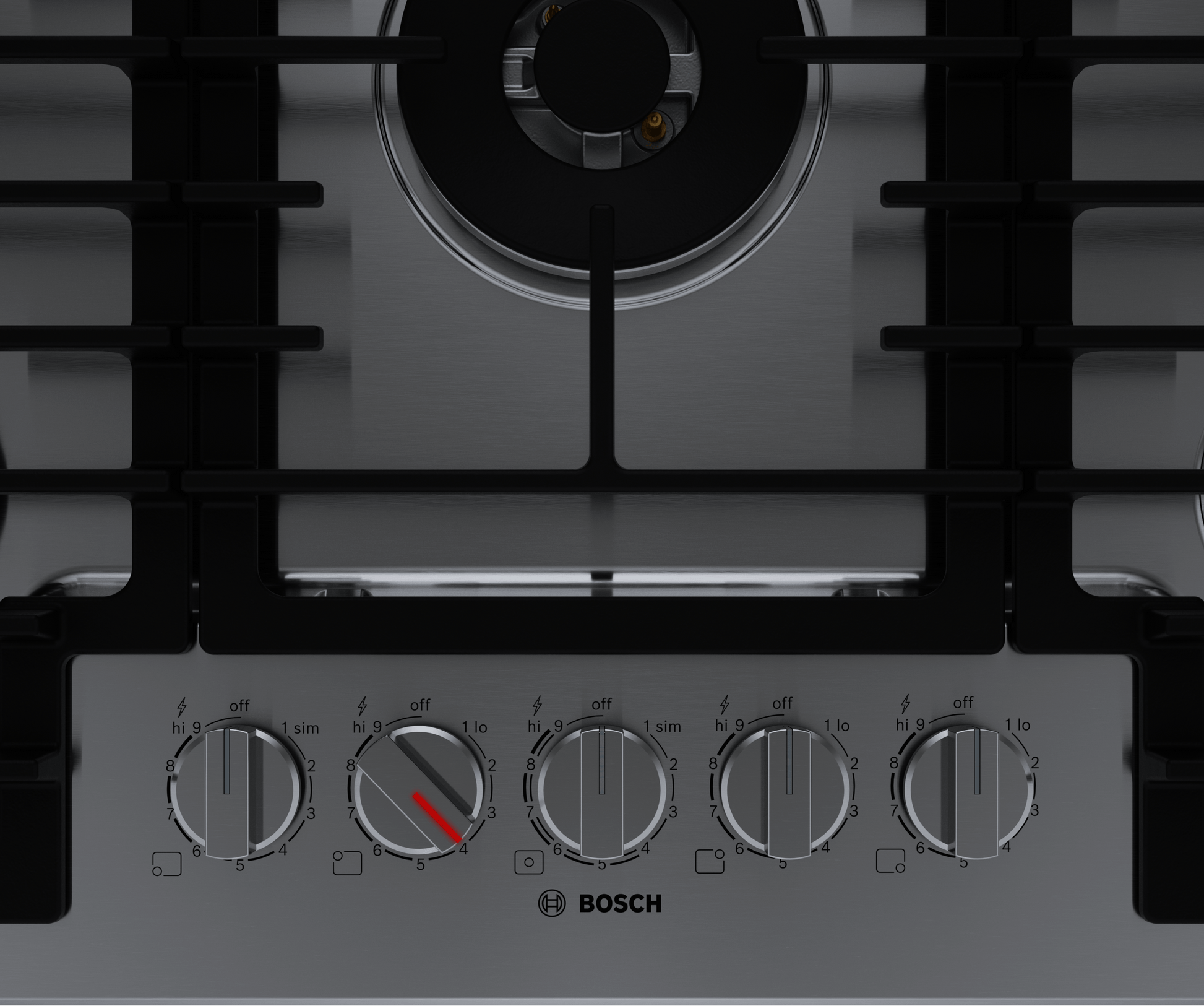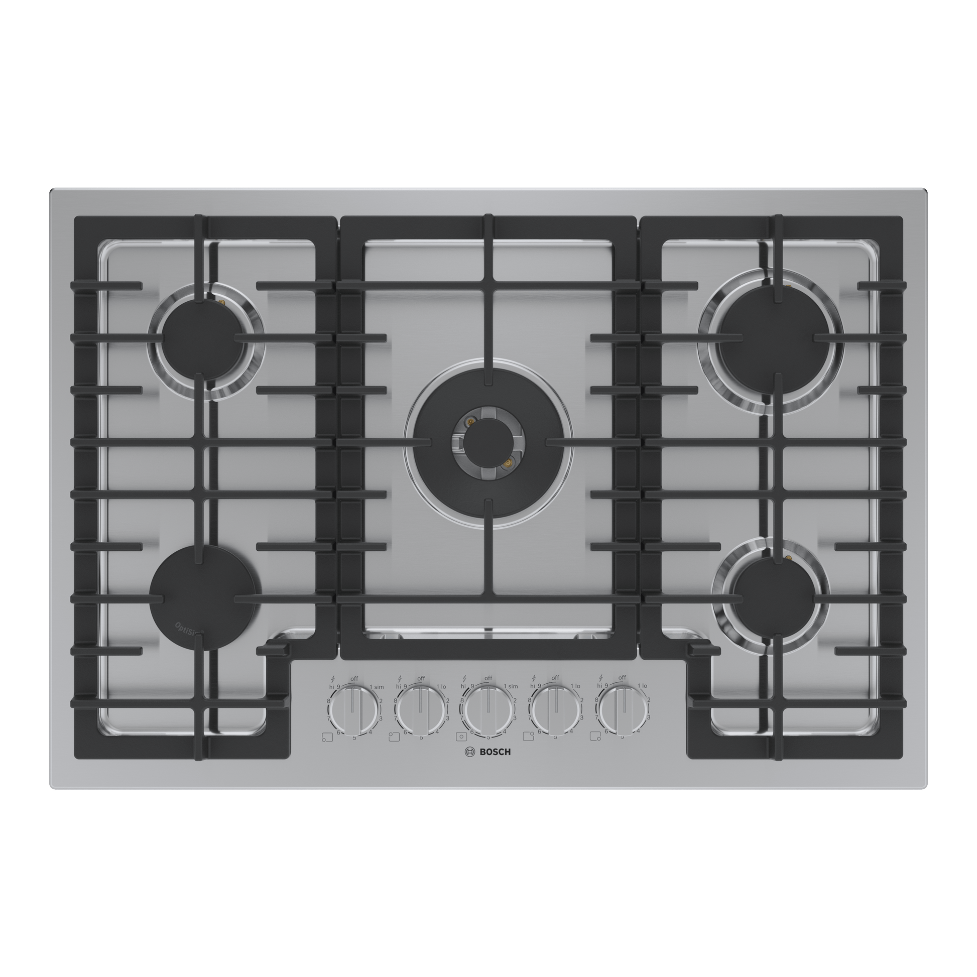 The Bosch NGM8059UC 30-inch gas cooktop combines powerful performance with a modern design, making it an ideal addition to any kitchen. The five sealed burners include a 20,000 BTU dual-ring burner for high-output tasks like rapid boiling and searing, as well as simmer burners for low-heat cooking. The continuous cast-iron grates provide a stable surface for easy movement of cookware from one burner to another.
