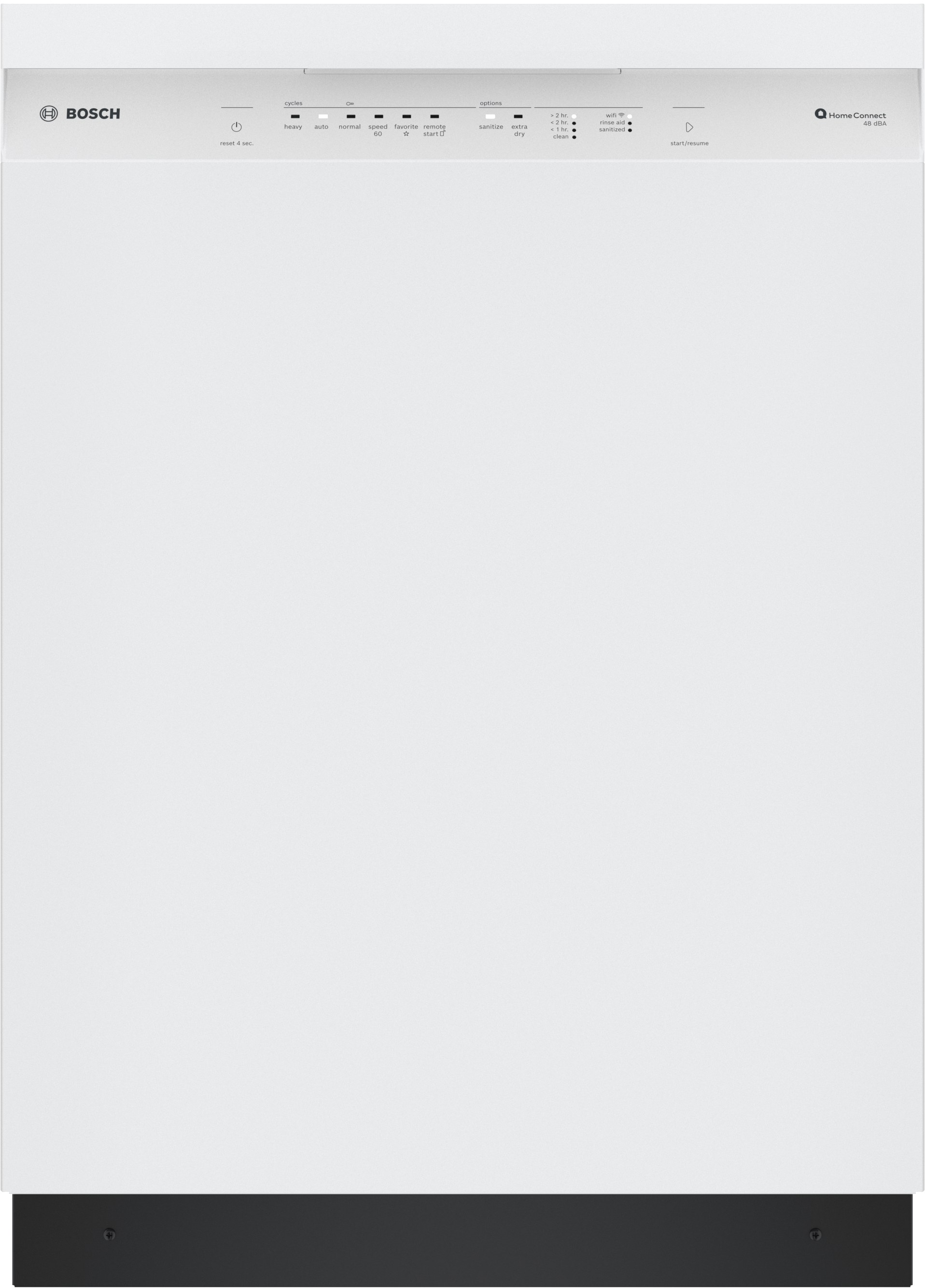 Bosch 100 Series built-under dishwasher delivers reliable cleaning in a sleek white finish.