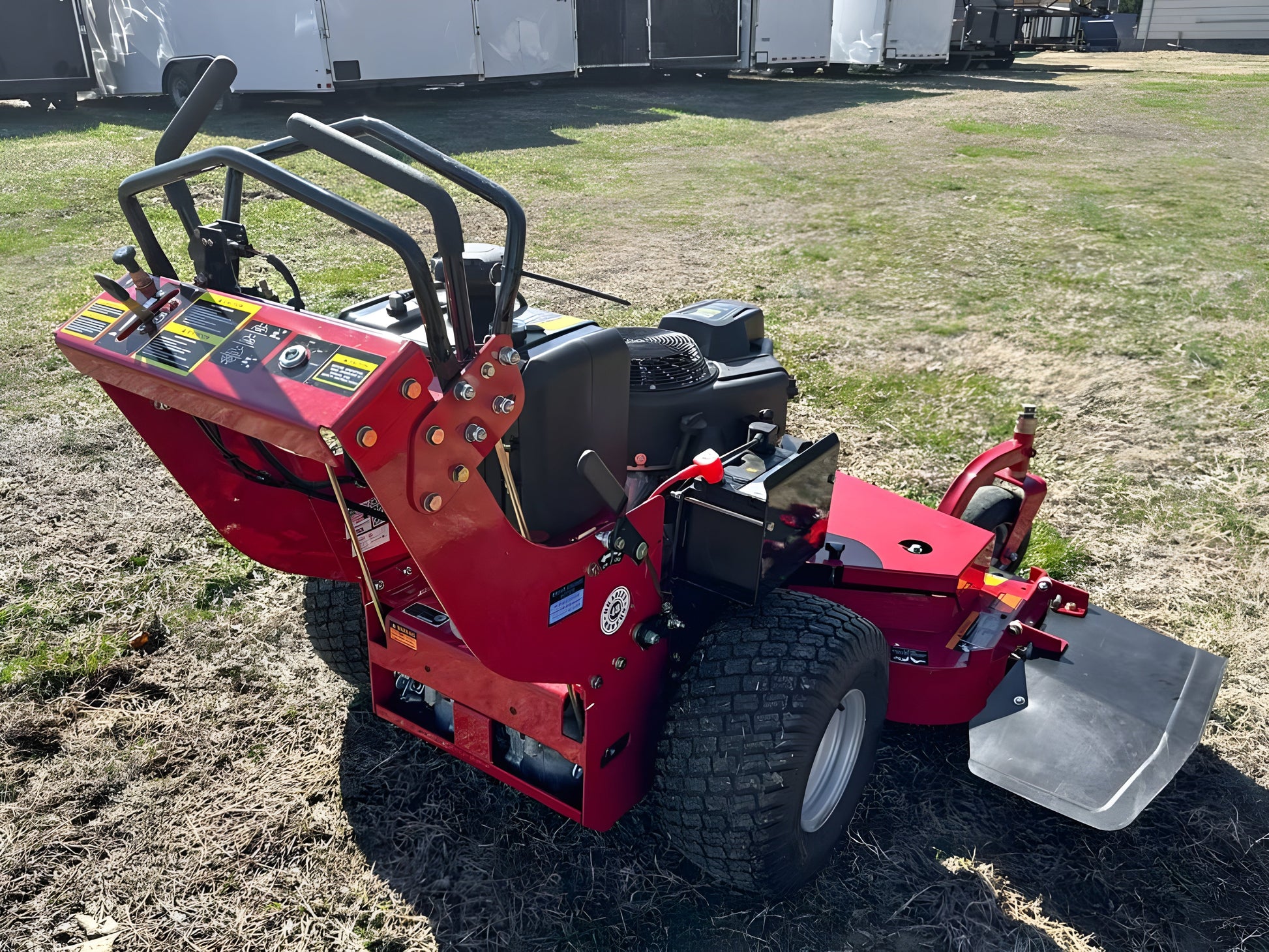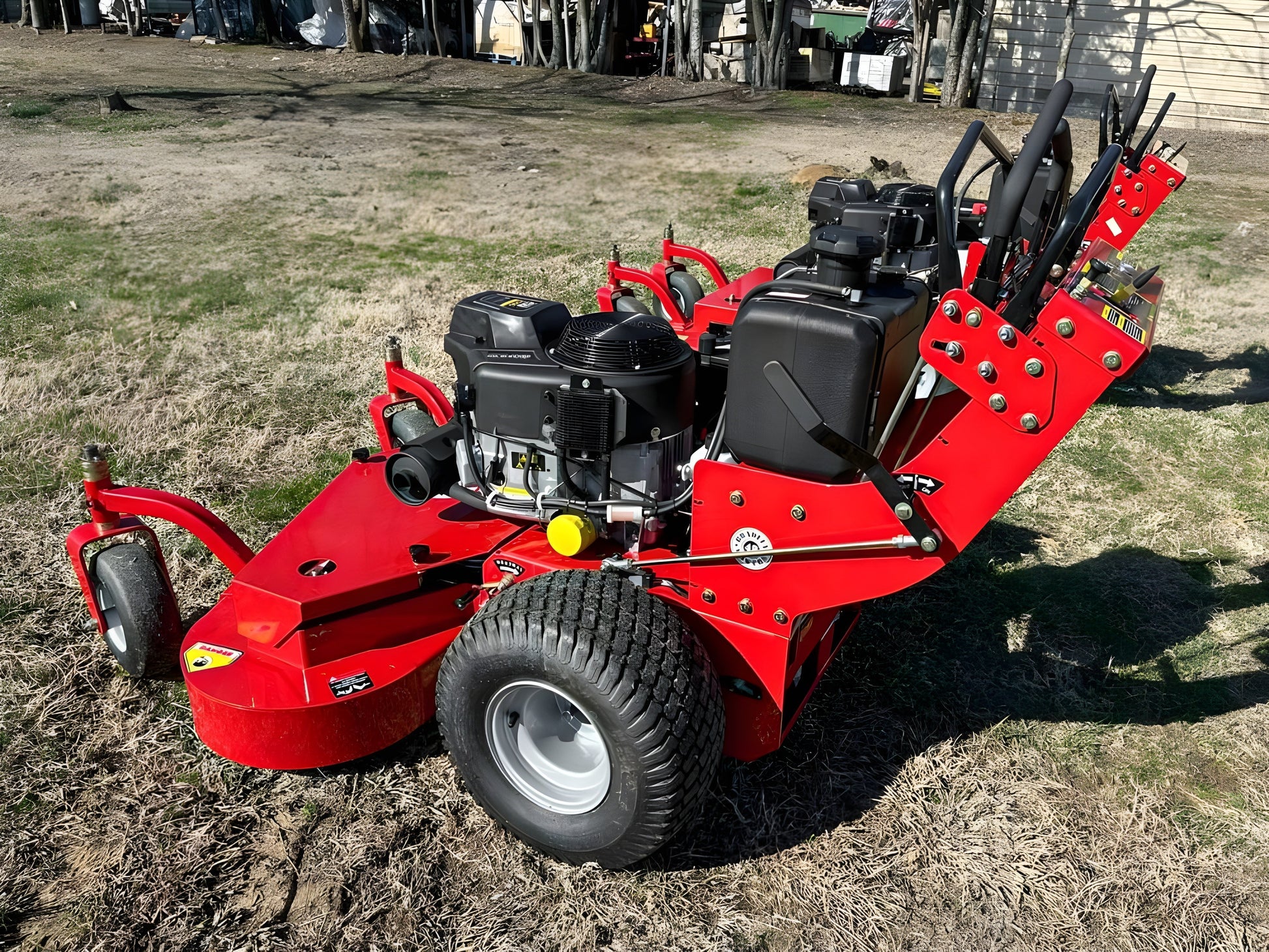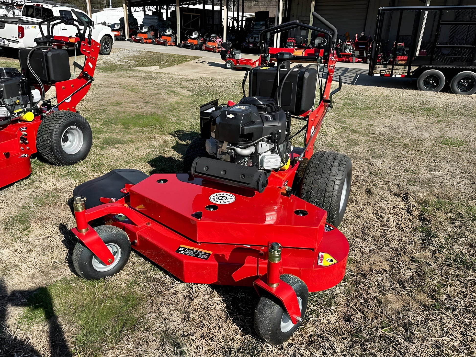 A: The 48WT-BS25E is a walk-behind mower, featuring a T-bar handle for easy control and enhanced maneuverability.