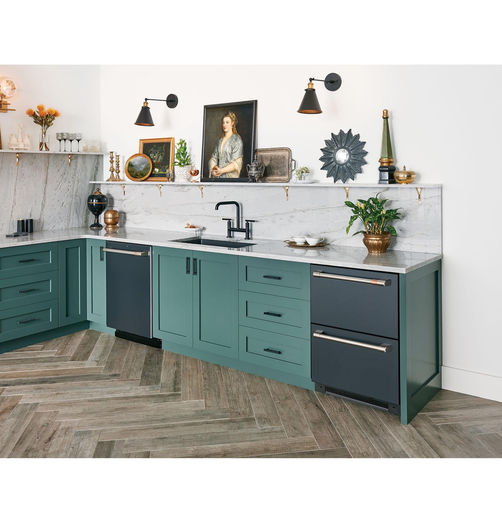 Enhance your kitchen or entertainment space with the Café CDE06RP3ND1, a 24-inch built-in dual-drawer refrigerator offering versatile cooling and premium aesthetics. The Matte Black finish with customizable hardware (sold separately) allows for a personalized look that complements modern kitchen designs.