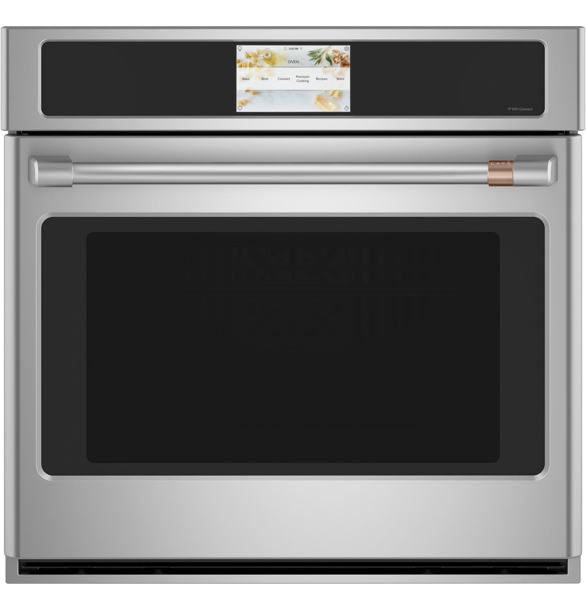 The Café CTS70DP2NS1 30" Smart Electric Single Wall Oven is designed for those who demand precision, convenience, and modern aesthetics in their kitchen. Featuring True European Convection, this oven ensures even cooking results by circulating heat efficiently. The 7-inch full-color LCD touch display makes it easy to navigate settings and select cooking modes, while the built-in Wi-Fi connectivity allows for remote control via the SmartHQ app.