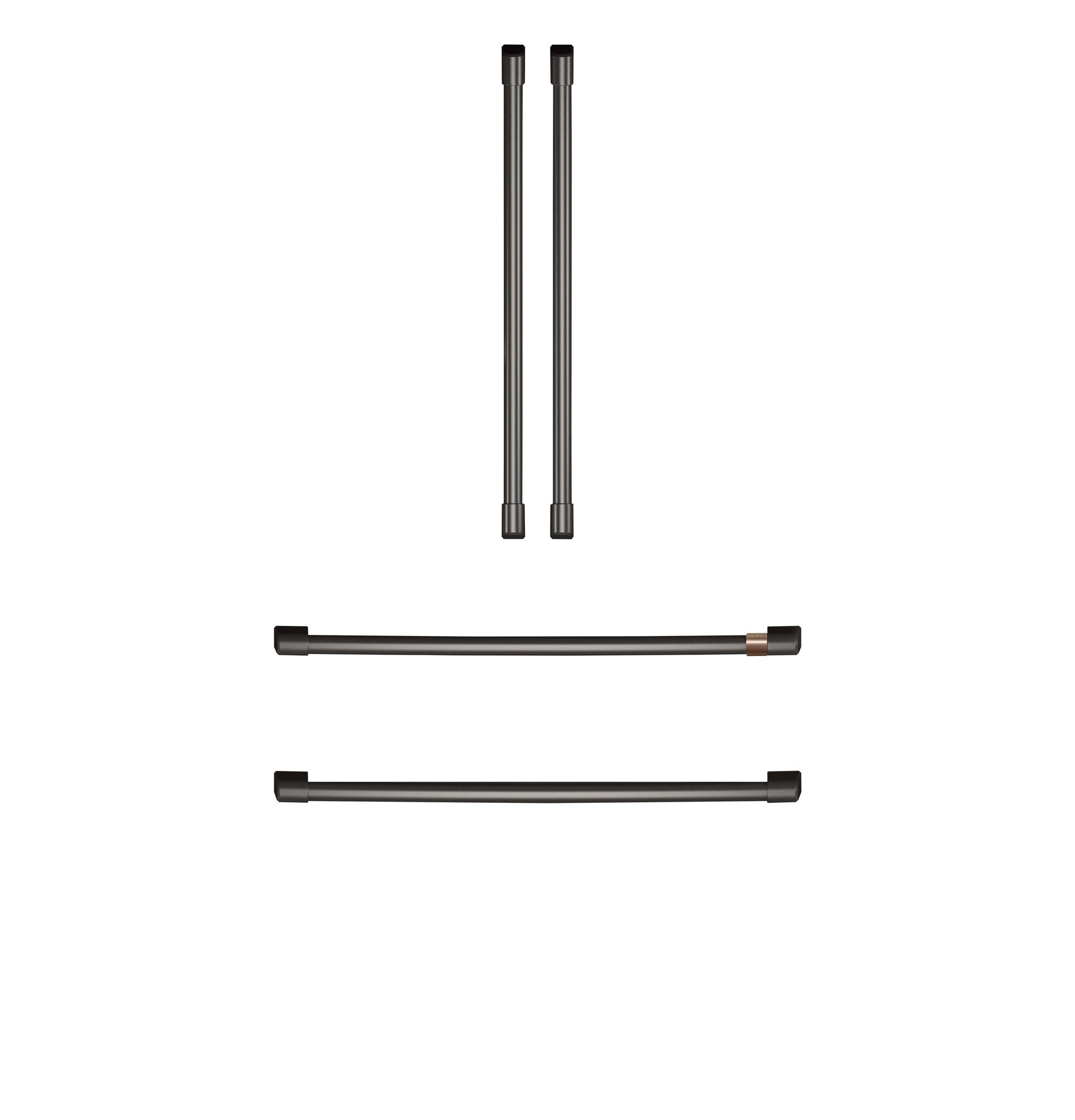 The Café CXQB4H4PNBT Handle Kit in Brushed Black provides a sleek, modern upgrade for refrigerator hardware.