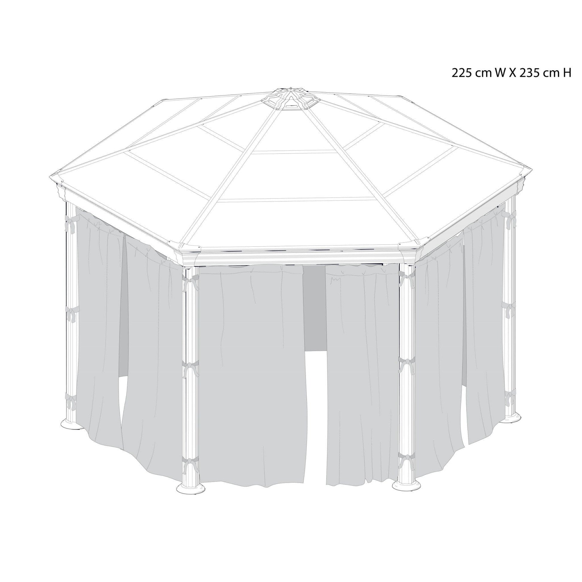 Sixâpiece curtain set enhances the Roma gazebo with elegant panels that add shade, seclusion, and a finished look.