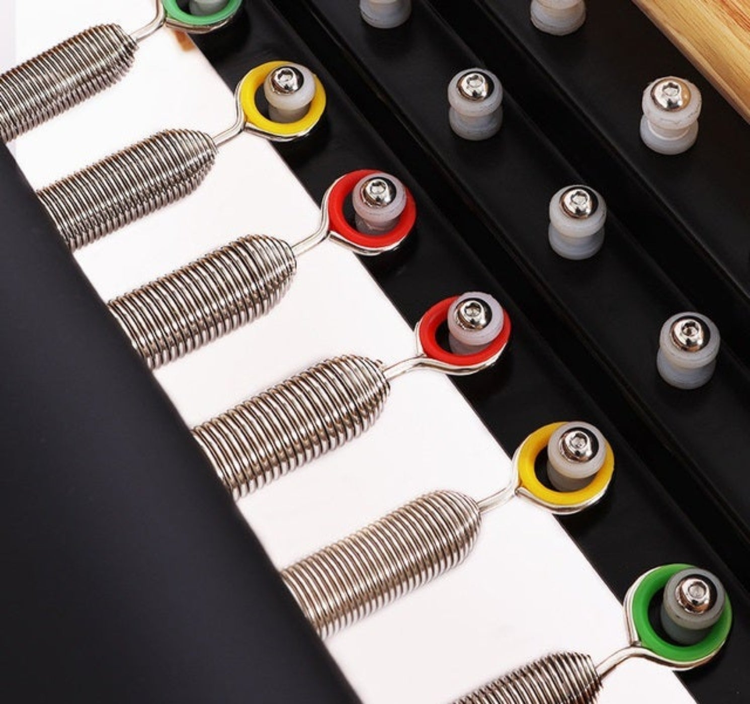 6. Springs: Six springs with multiple levels of resistance.Three gear options for each spring for fine resistance combinations.