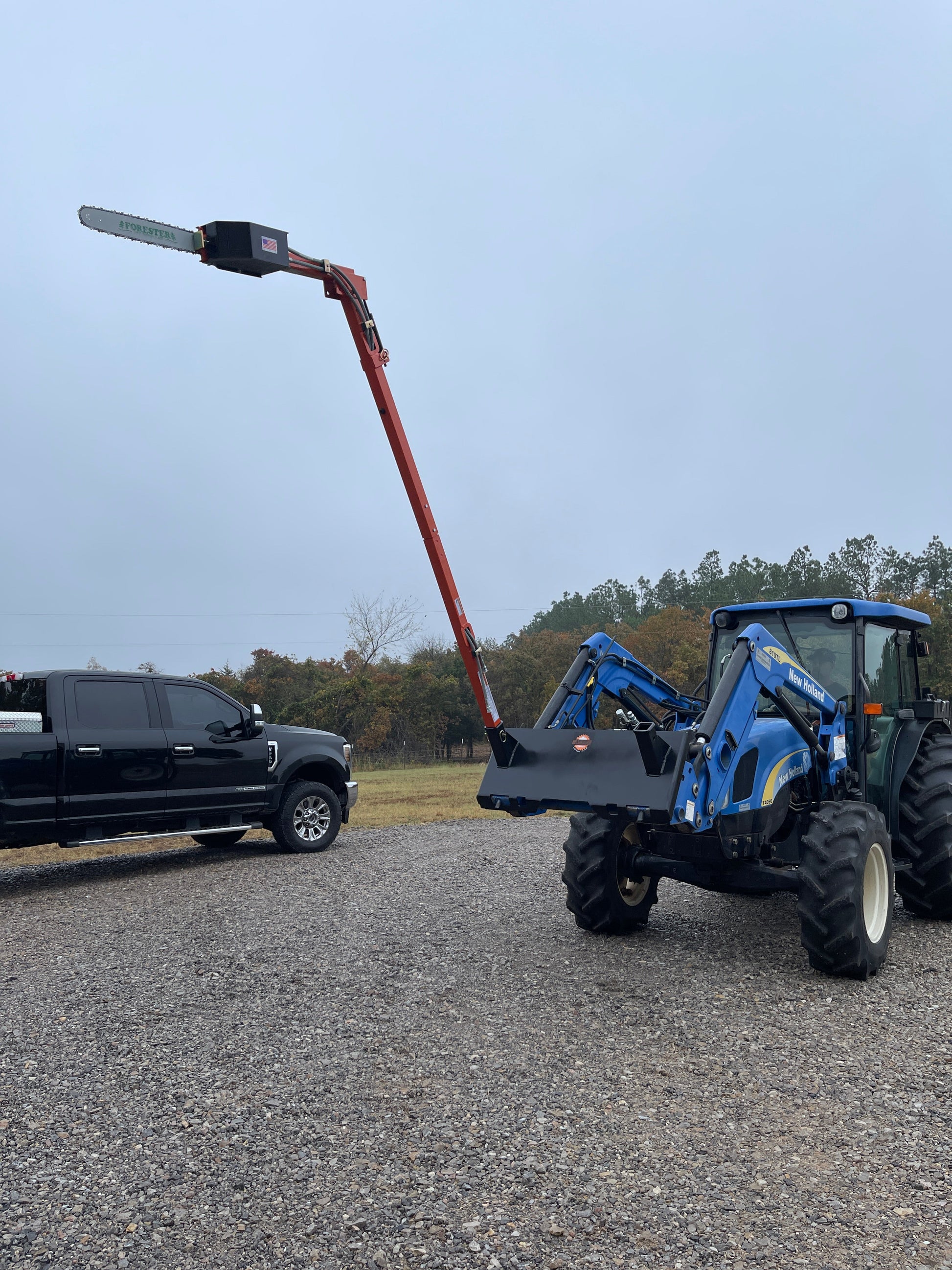 The LS8 Hydraulic Chainsaw provides smooth, powerful cutting from the safety of your seat, perfect for clearing overhangs, fence lines, and tree rows.