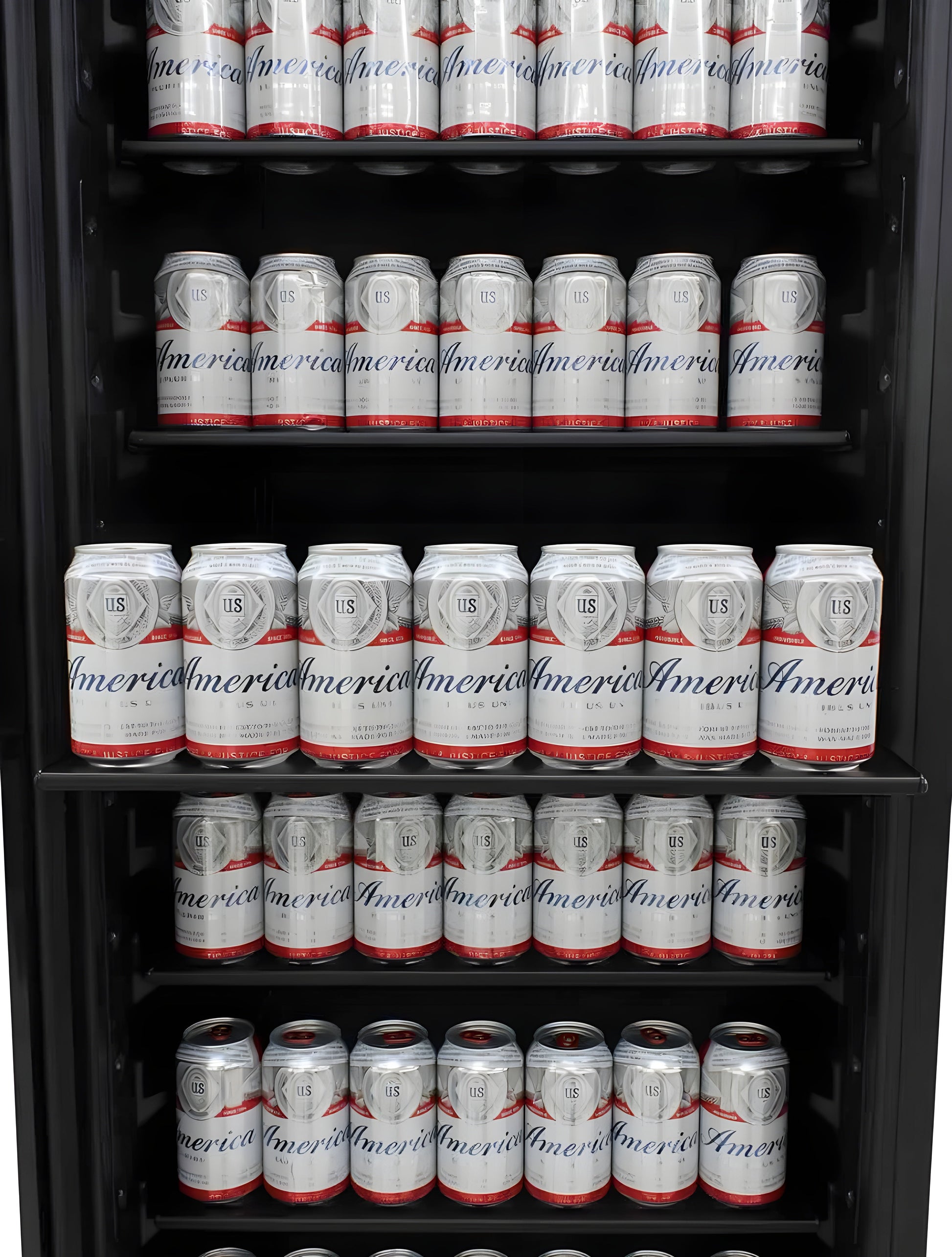 Adjustable Shelving – Allows for customization to accommodate various can and bottle sizes.
