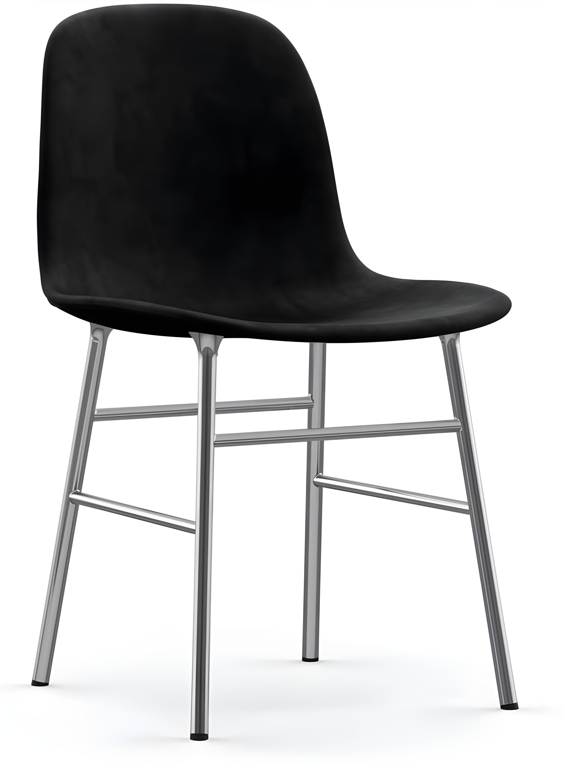 The Norman Form Chair Fully Upholstered - Chrome - Set of 2 seamlessly blends minimalist design with exceptional craftsmanship. Featuring sleek chrome legs and luxurious upholstery, this chair elevates the overall aesthetic of any space. Thanks to its clean lines and versatile design, the Form Chair works wonderfully in both residential and commercial settings.