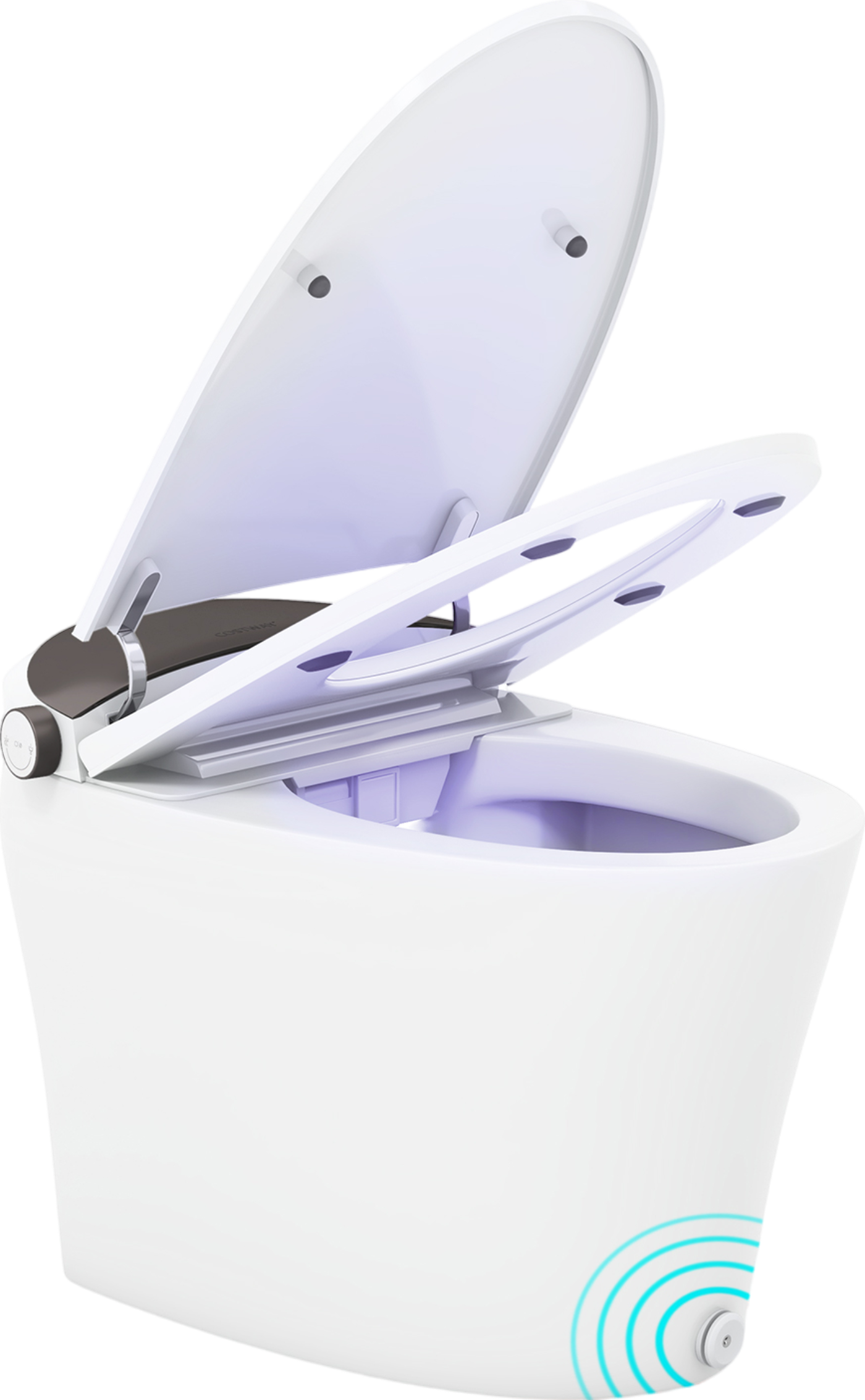 This smart toilet has multiple user-friendly features including a heated seat with 4 levels of heating temperature. It also offers four flushing options for added convenience: off-seat auto, foot kick, remote control, and side knob flush. The bidet function offers 4 water temperature settings and 5 nozzle settings, plus a UV light disinfects the nozzle surface for enhanced cleanliness. The auto-opening lid and soft-closing seat reduce noise, and the built-in night light illuminates the smart toilet at night.