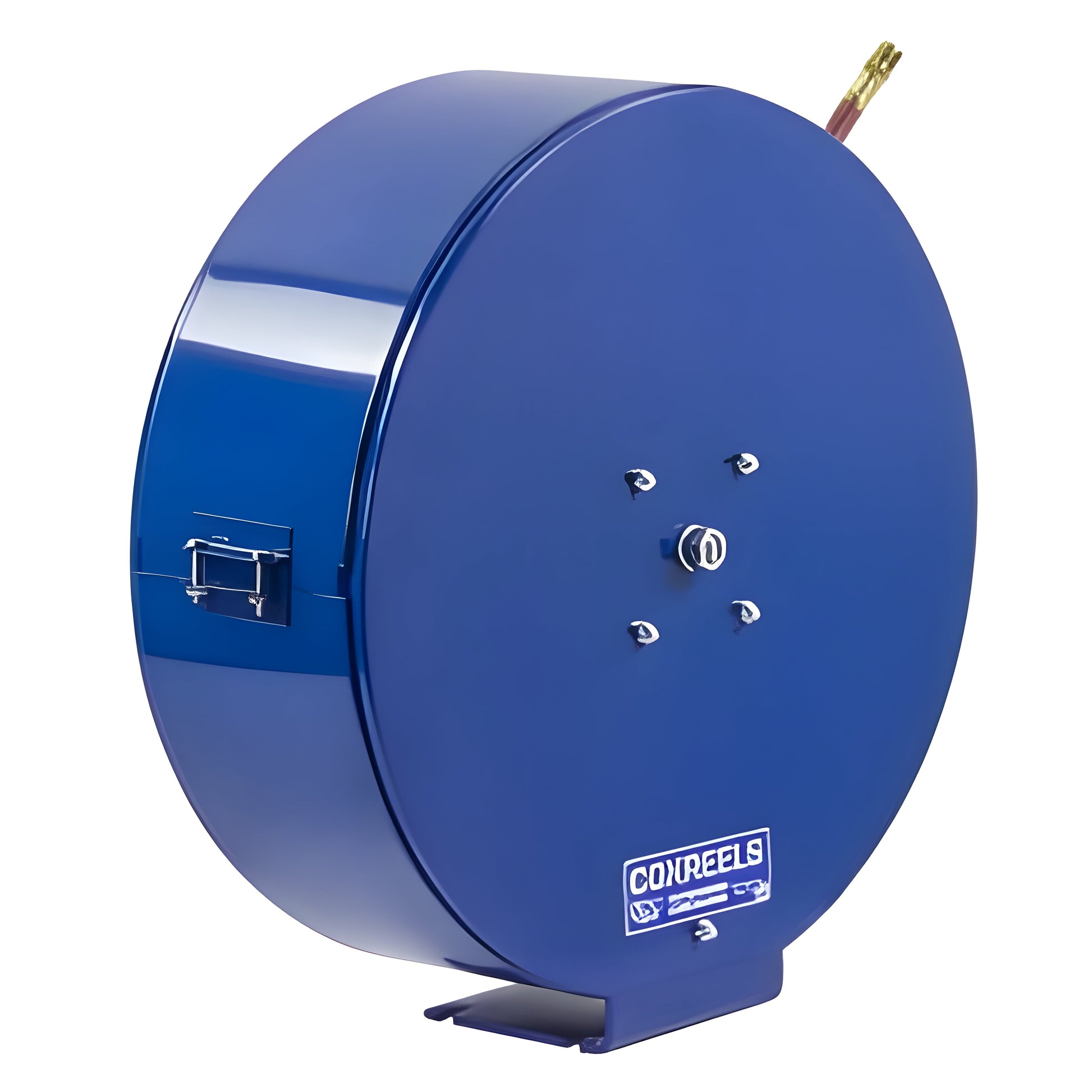 COXREELS EN Series "Enclosed" spring driven hose reels are protected by a powder coated steel casing that shields out the elements to protect and extend the life of the reel, the hose and the components inside. It adds a neat, tidy, aesthetic appearance to work environments that demand a clean and professional look. The 3 piece casing is easy to assemble and disassemble for simple installation and maintenance.