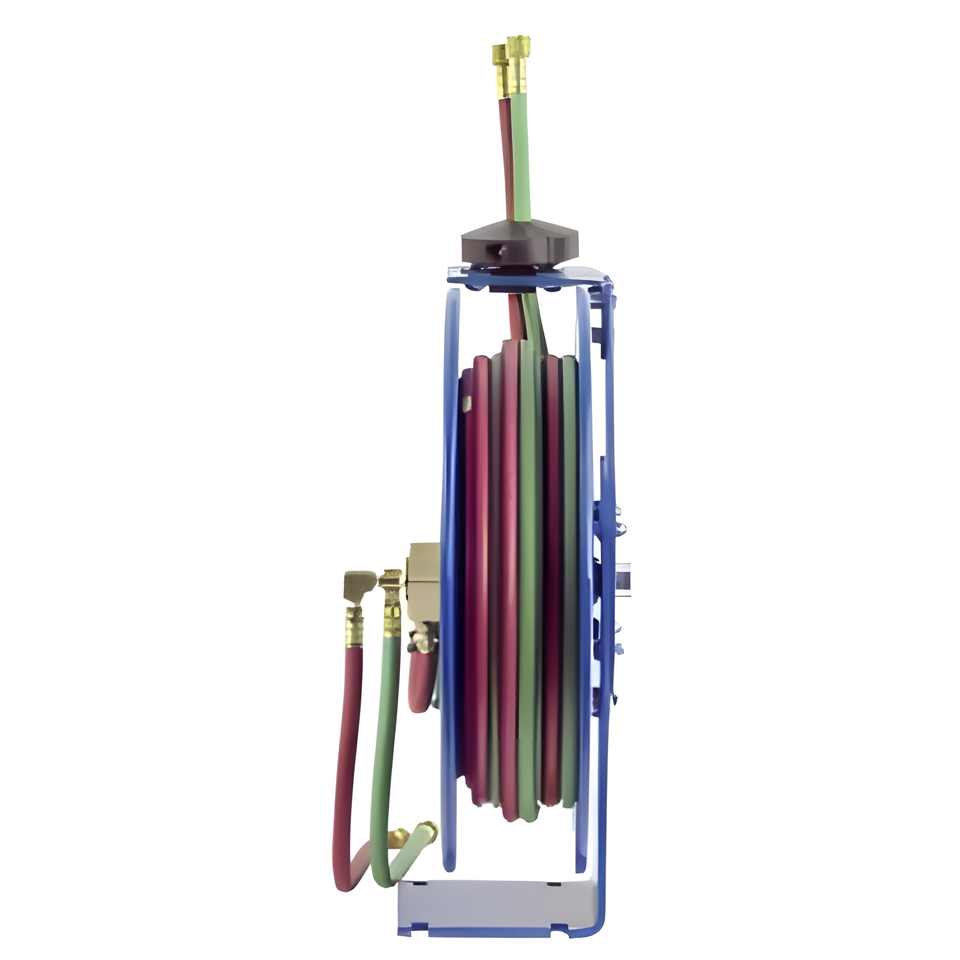 - WELDING GAS SWIVEL - External 90◦ full-flow dual ported brass swivel with VITON seals offering both connections from the same side of the reel. No need to remove the reel from its mount.