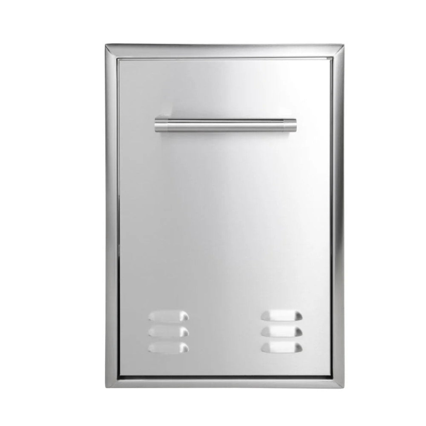 A: Versatility (trash or tank), premium stainless construction, smooth ball-bearing glides, and a clean, professional outdoor kitchen look.