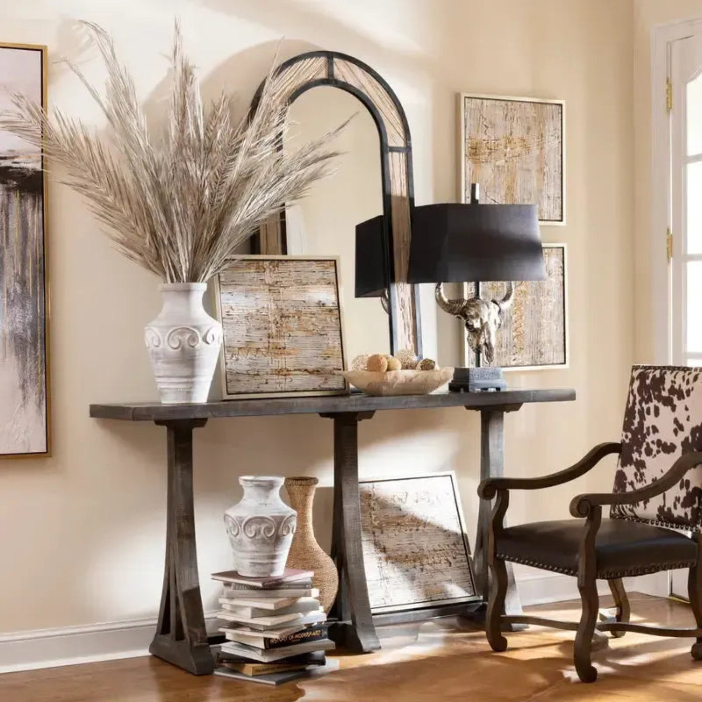Extra-long 76" tabletop offers generous space for décor, storage, or display.