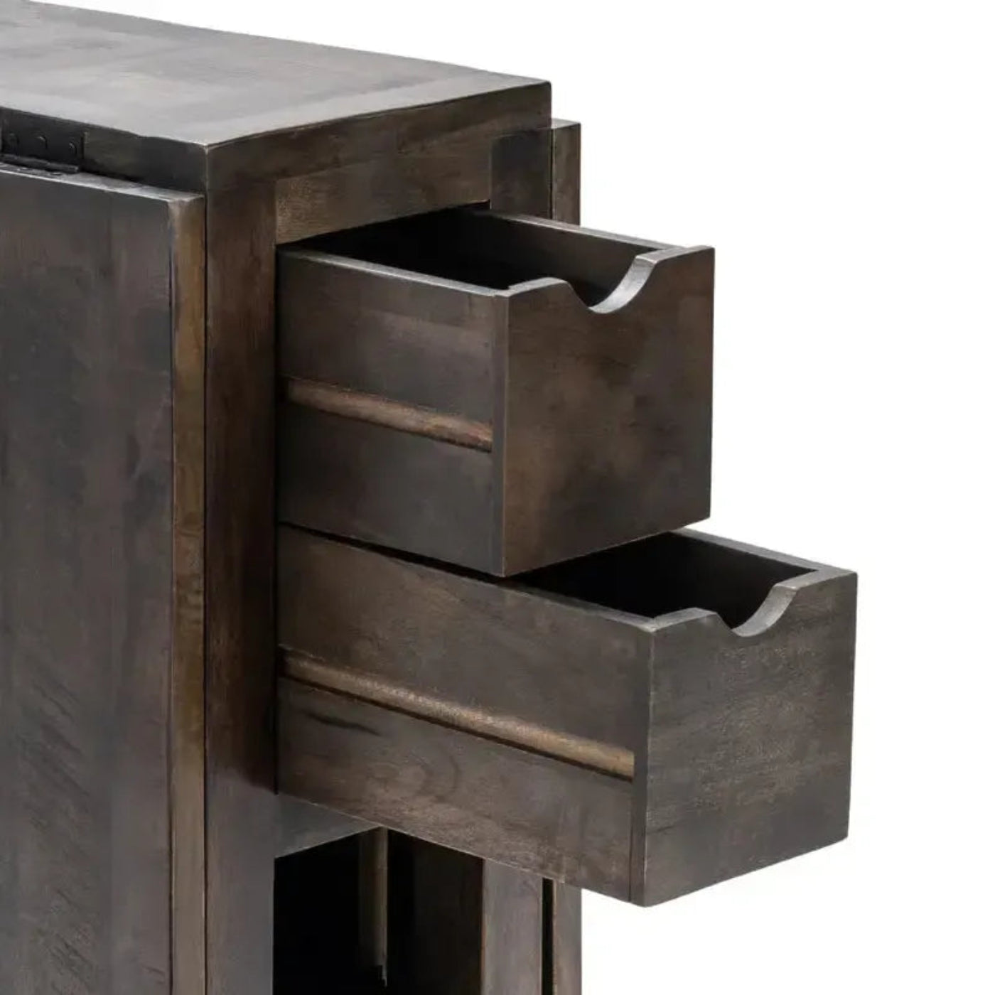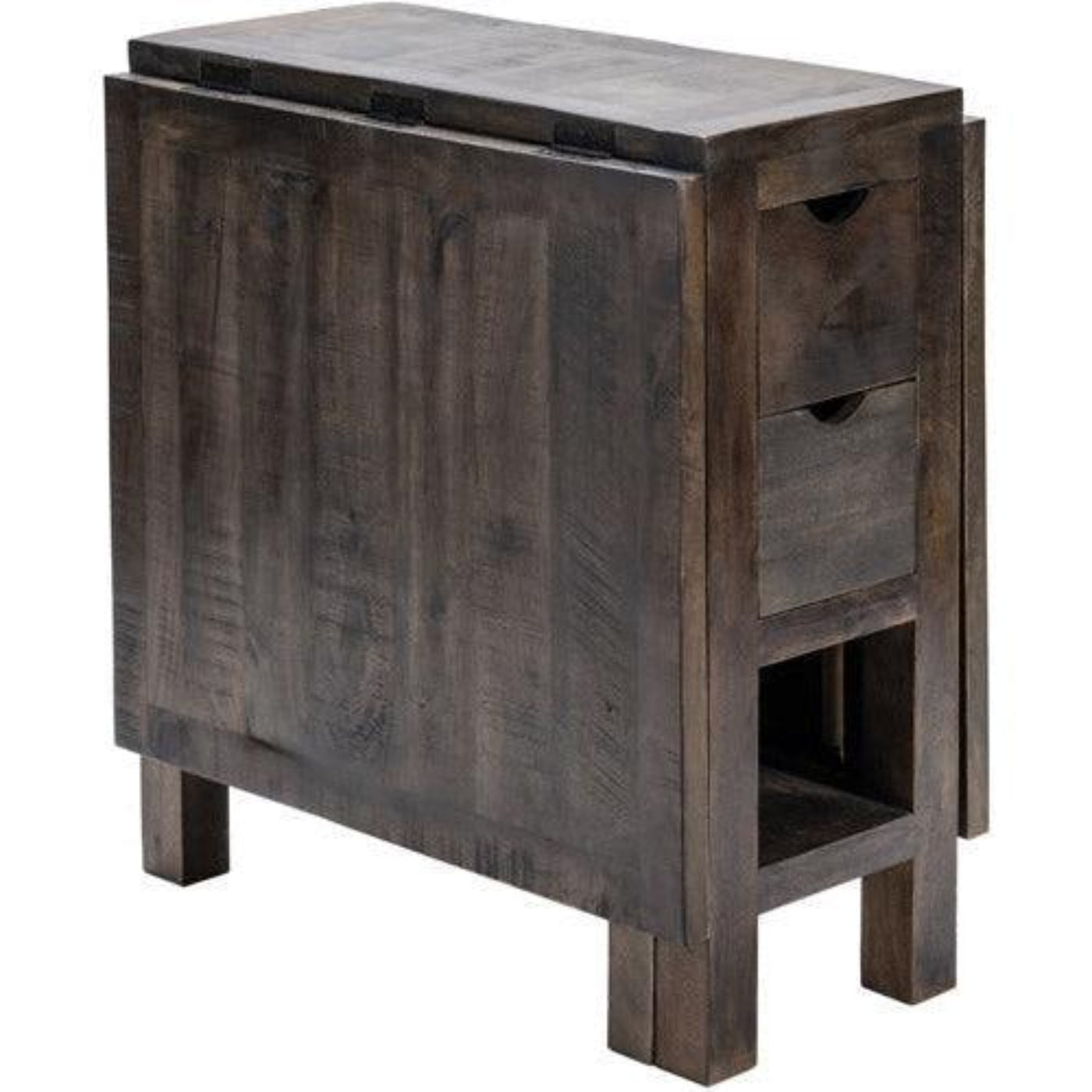 The Crestview Collection Barnwell Dining Table is the ideal table for small spaces. Two leaves supported by diagonal legs pull out to create a large dining table. The middle support piece features two drawers and an open cubby for easy storage. Made of wood, this table has a dark-brown finish and a rustic style that will complement the decor style in your dining room.