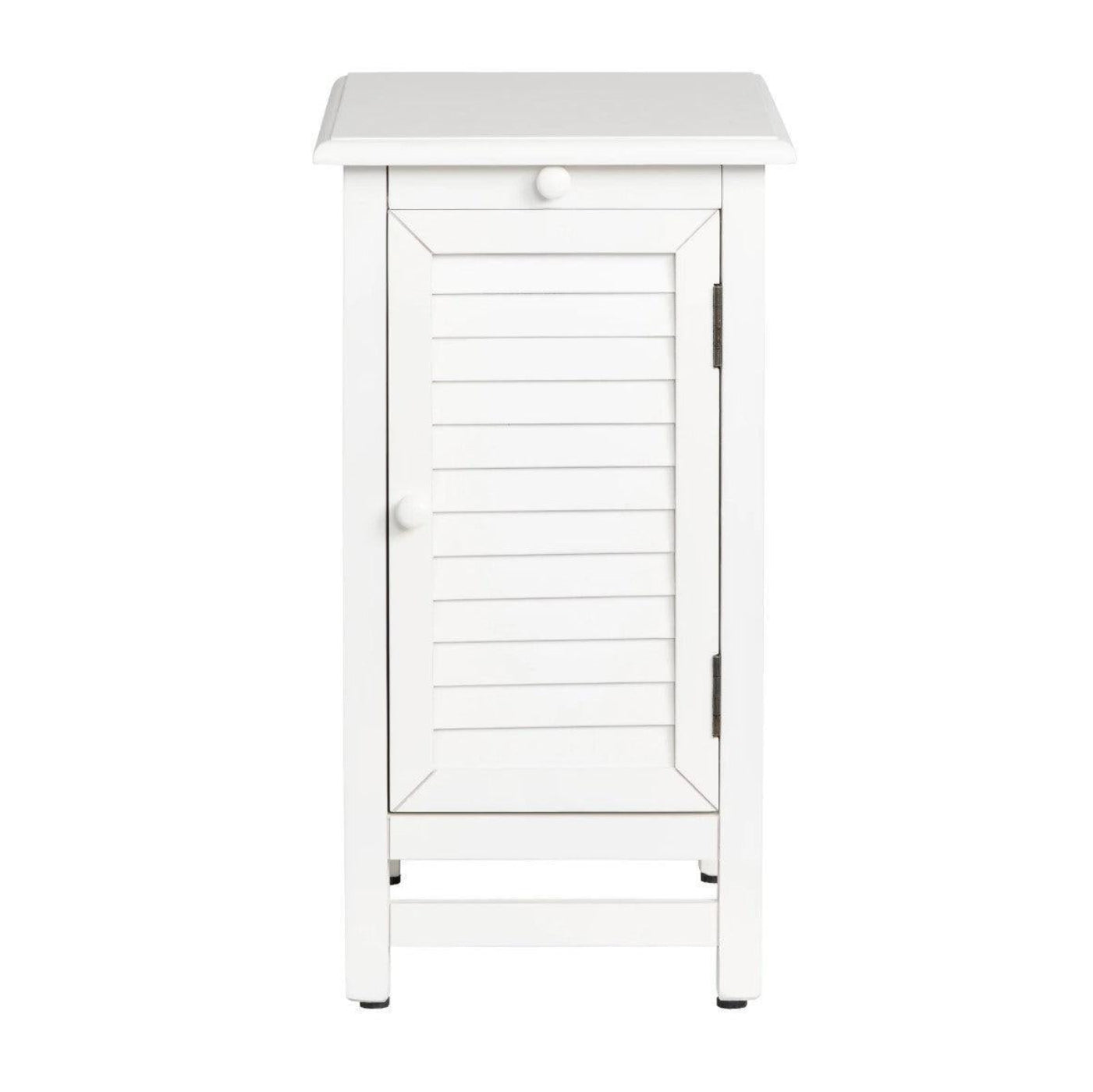 You couldn't ask for a more functional piece than this Crestview Collection Cape May Cottage White Shutter Door and 1-pull Shelf Chairside Table. Not only does its white fir wood finish add brightness and a breezy style to your living space, but the table's shutter-style door is perfect for reading material or entertainment controls, while the nearly hidden pull shelf adds extra table top space right when you need it.