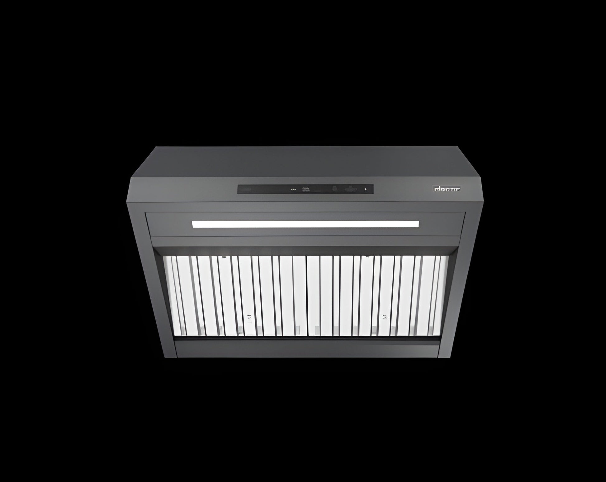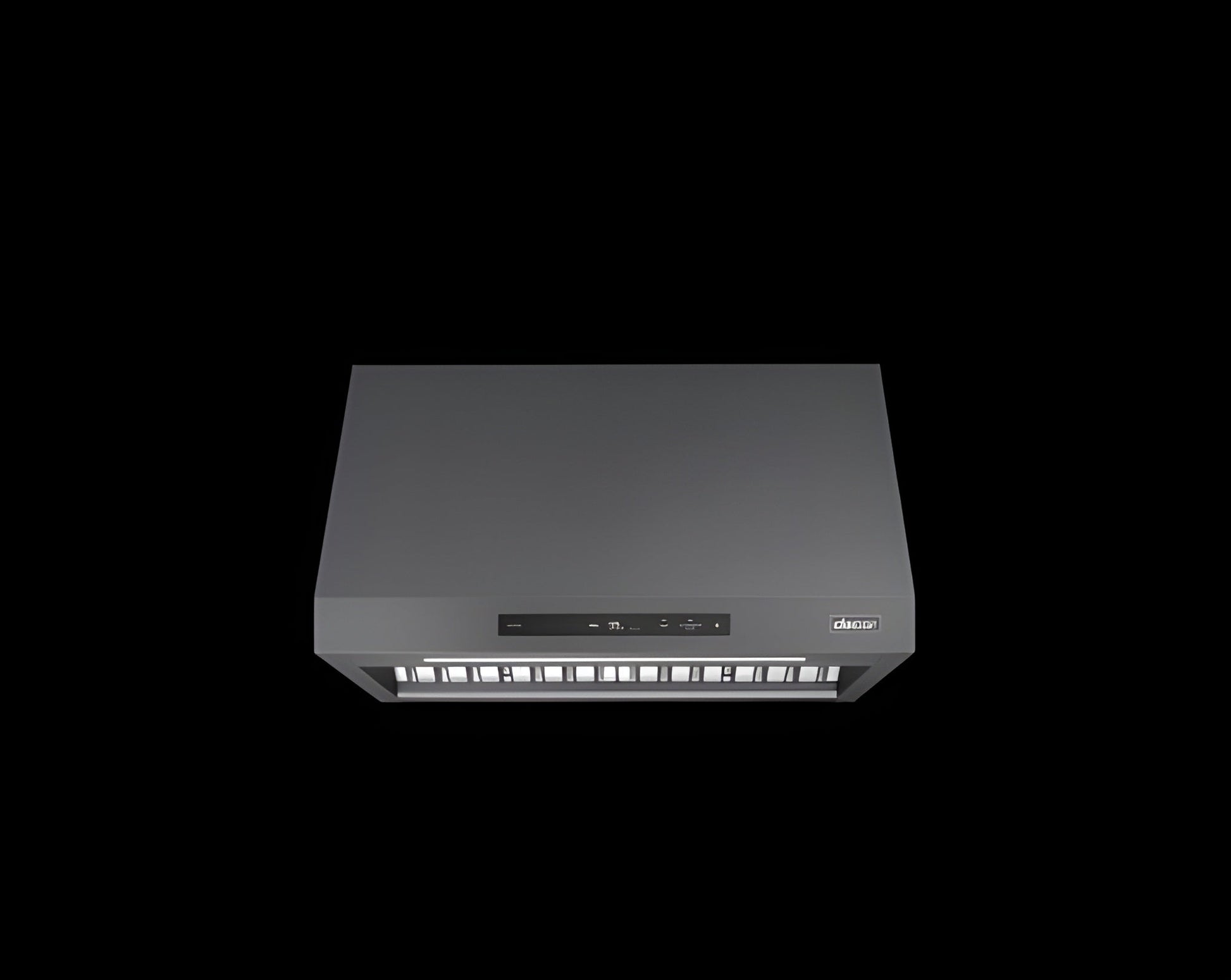 Sleek and Modern Design: The Dacor DHD30U990CM 30-inch Pro-Canopy Wall Hood in Graphite Stainless features elegant lines and a sophisticated glass touch control panel, seamlessly integrating into contemporary kitchen aesthetics.