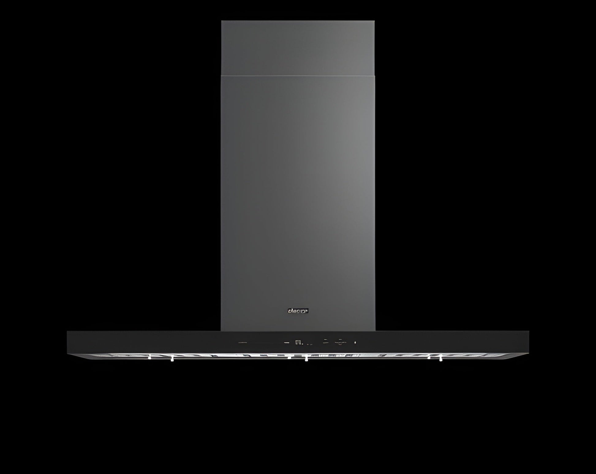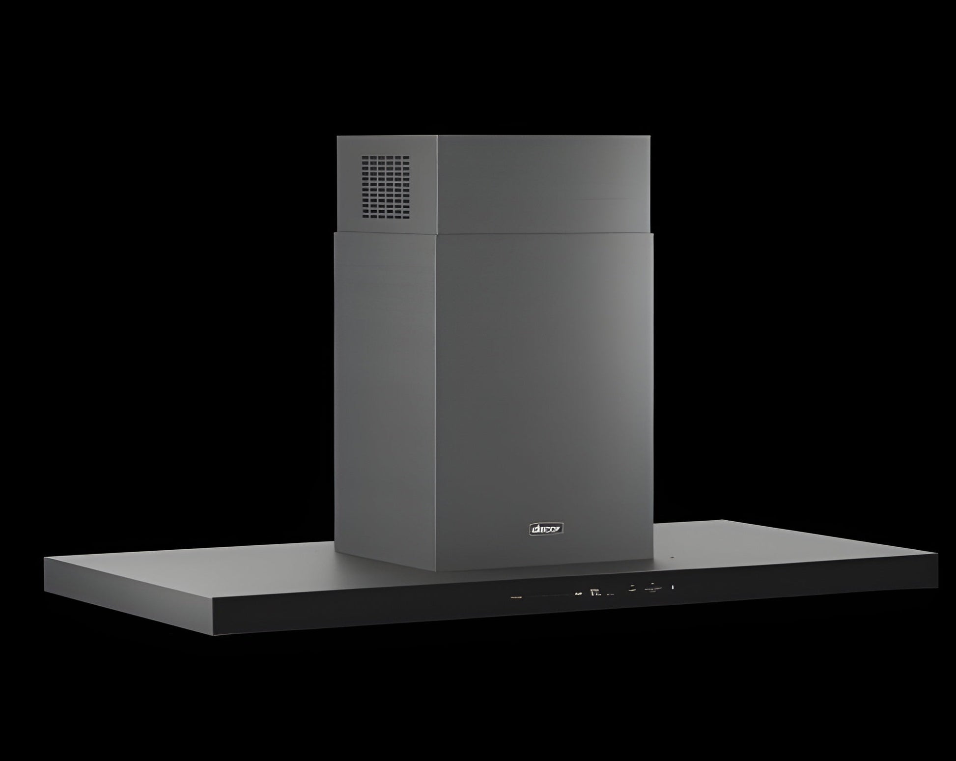 Elegant and Modern Design: The Dacor DHD54U990IM 54-inch Island Hood in Graphite Stainless features sleek lines and a sophisticated glass touch control panel, seamlessly integrating into contemporary kitchen aesthetics.