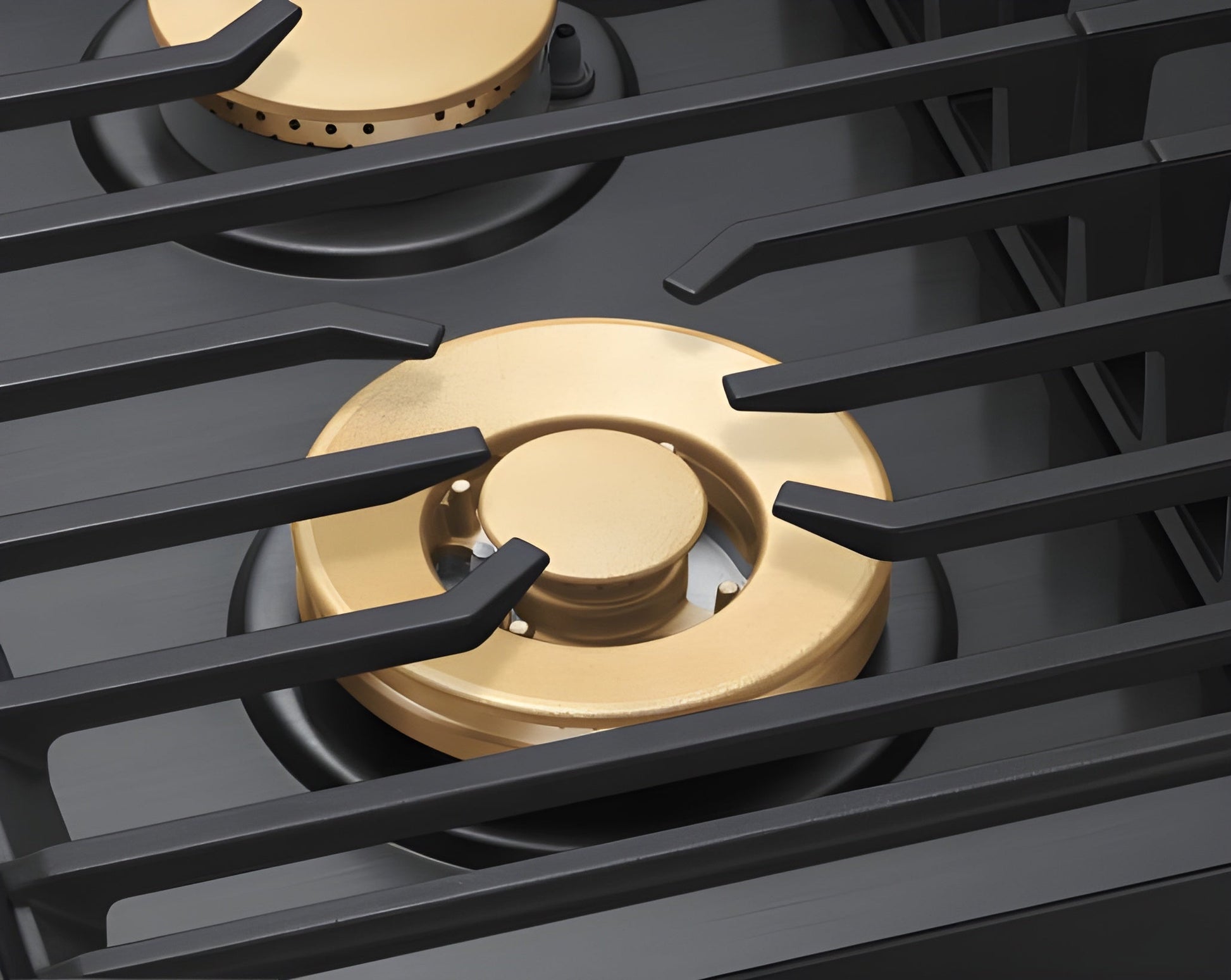 Our Gas Cooktops are designed to stand out while seamlessly integrating into the countertop. Finished in an easy-to-clean, heat-resistant, diamond-like carbon coating, and equipped with a central dual-stack, sealed brass burner for powerful performance and control.