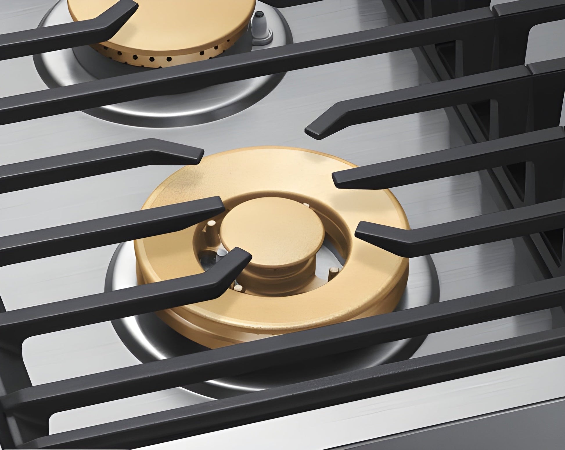 Our Gas Cooktops are designed to stand out while seamlessly integrating into the countertop. Finished in an easy-to-clean, heat-resistant, diamond-like carbon coating, and equipped with a central dual-stack, sealed brass burner for powerful performance and control.