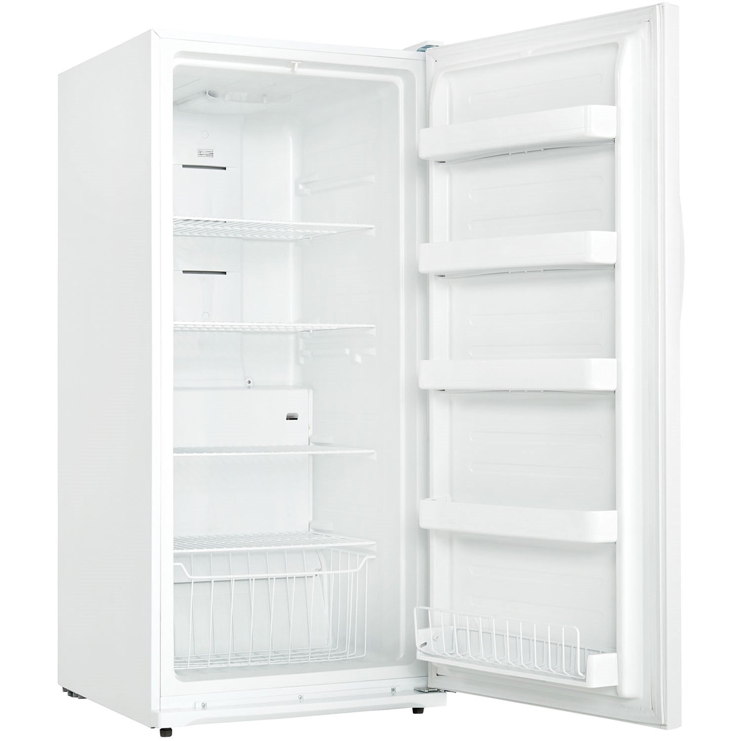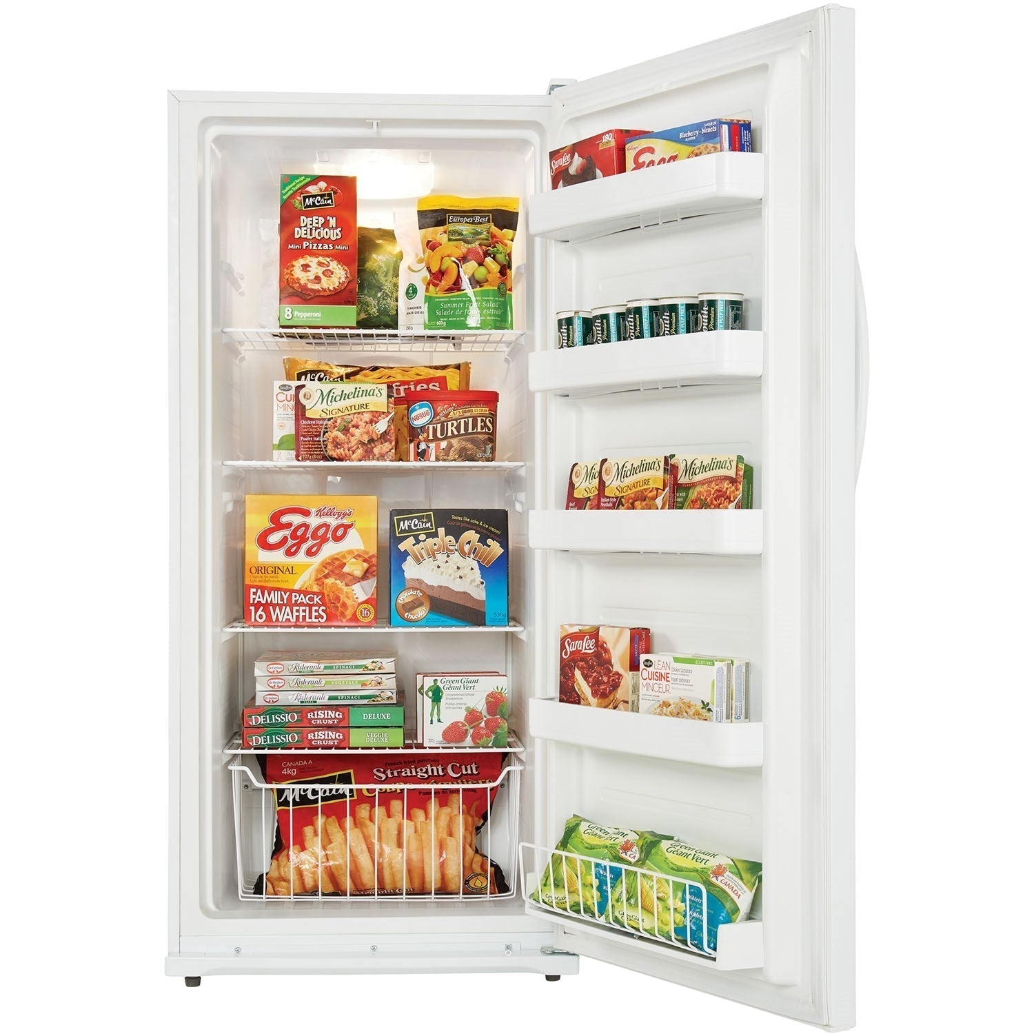 This Danby 14 cu. ft. upright freezer provides ample cold storage for your whole family. Its convenient frost free design prevents ice buildup on the interior for easy year-round maintenance. The multi-functional design allows this unit to operate as either a freezer or refrigerator. Adjusting setting is easy with the intuitive digital thermostat mounted on the door. After filling the freezer with fresh goods, use the quick freeze function to bring the internal temperature down quickly. A door ajar alarm and high-temperature alarm help prevent food spoilage. You'll have no problem seeing all your freezers contents with the bright interior LED light in this dependable upright freezer by Danby.
