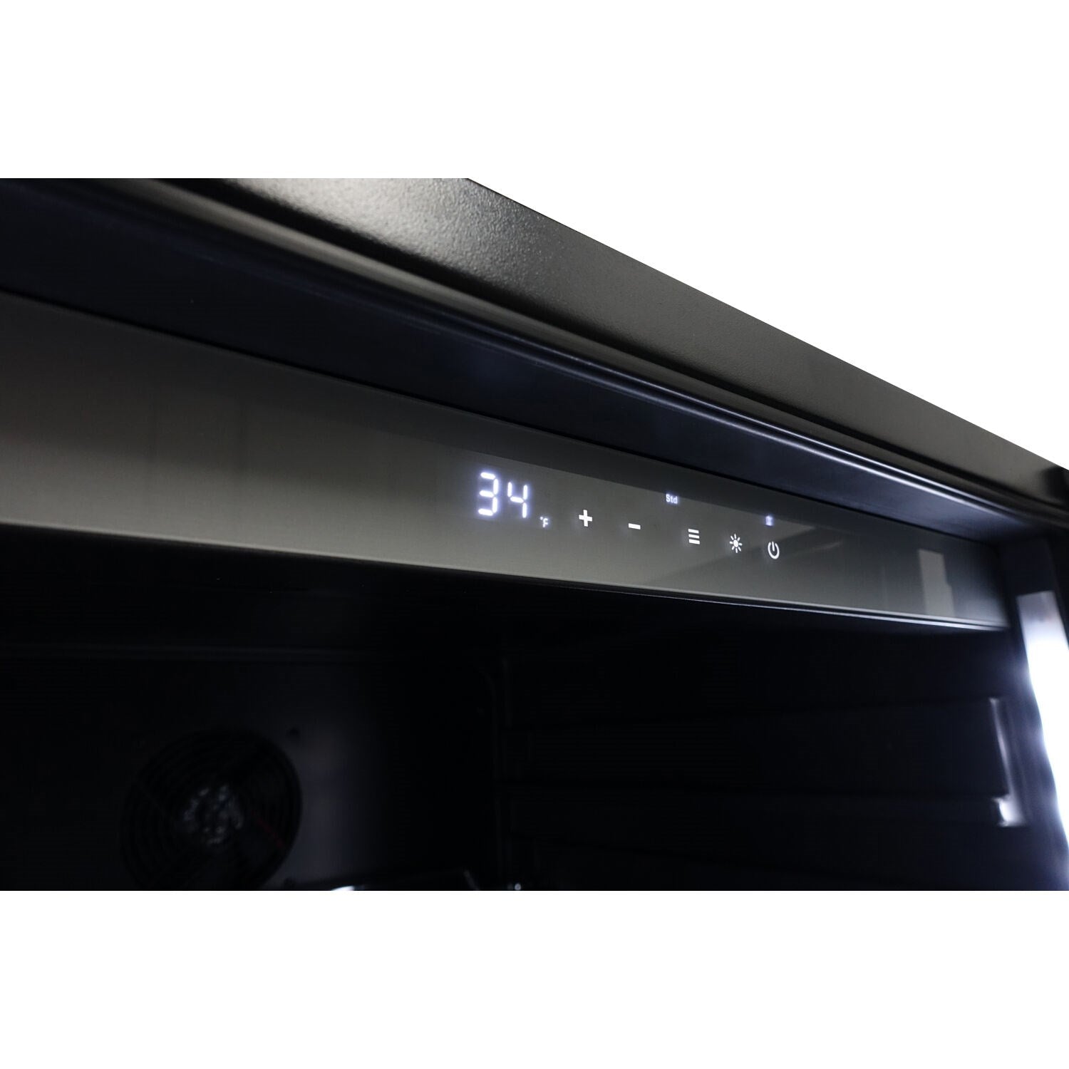 It also features Seamless Capacitive Touch Control, a Reversible Low E Dual-Pane Argon-Filled Glass Door with a Lock, ergonomic handle, and a Perimetrical Interior LED Light to keep your bounty of brews in prime view.