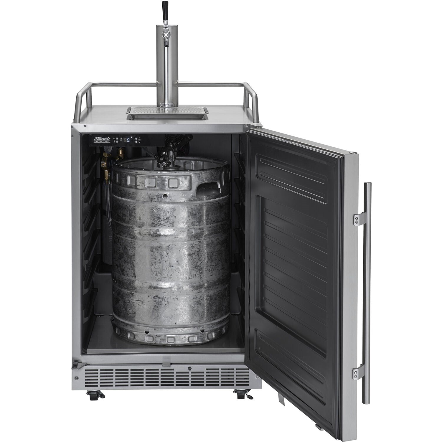 Or use it freestanding and serve up cold draft beer to friends on your deck or inside the pool house. You have everything you need to go from keg to glass, including Silhouette's Premium Tap-right™ tap tower, coupler and regulator, all made in the USA. The Silhouette Pro outdoor-rated stainless steel keg cooler is the pinnacle of backyard entertainment.