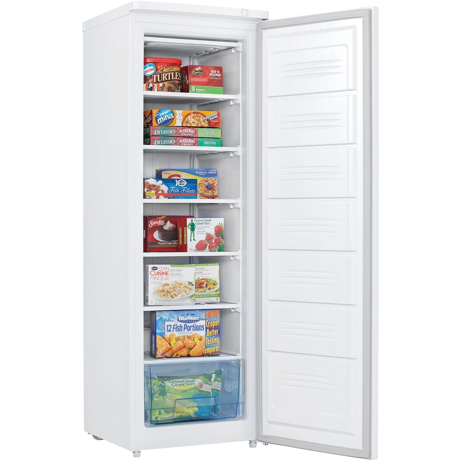 This unit features a white interior and exterior design with digital thermostat for maximum accuracy and a bright interior that makes it an easy task to find your favorite frozen food items. This popular model offers plenty of storage options with adjustable interior shelves along with additional clear storage bin for smaller, more frequently used items. In addition, it comes with a worry-free 5 year warranty on parts and labour along with in-home service.