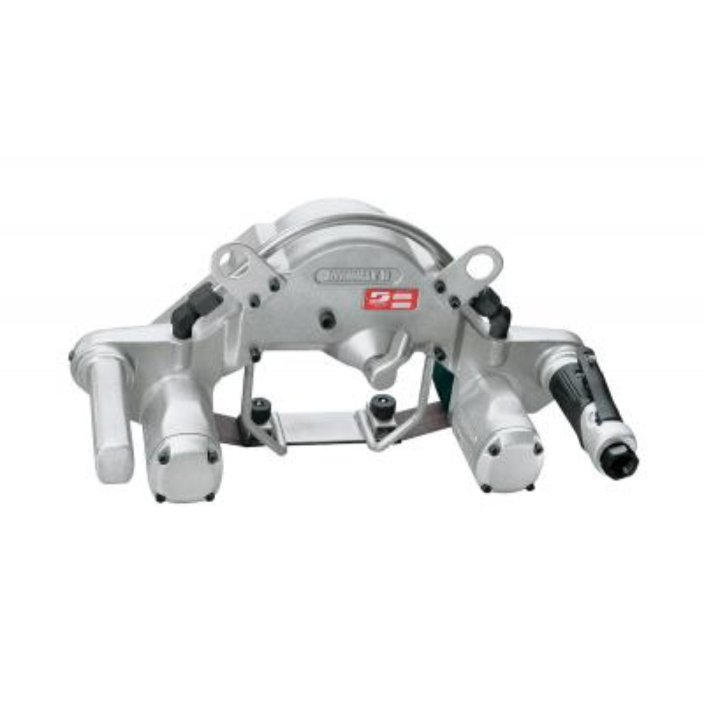 Heavy-Duty 'Dual Motor' with Platen offers extra power. Uses 2" x 34" belts; belts spans 11-1/2" for 'strap polishing' up to 36" diameter pipe.