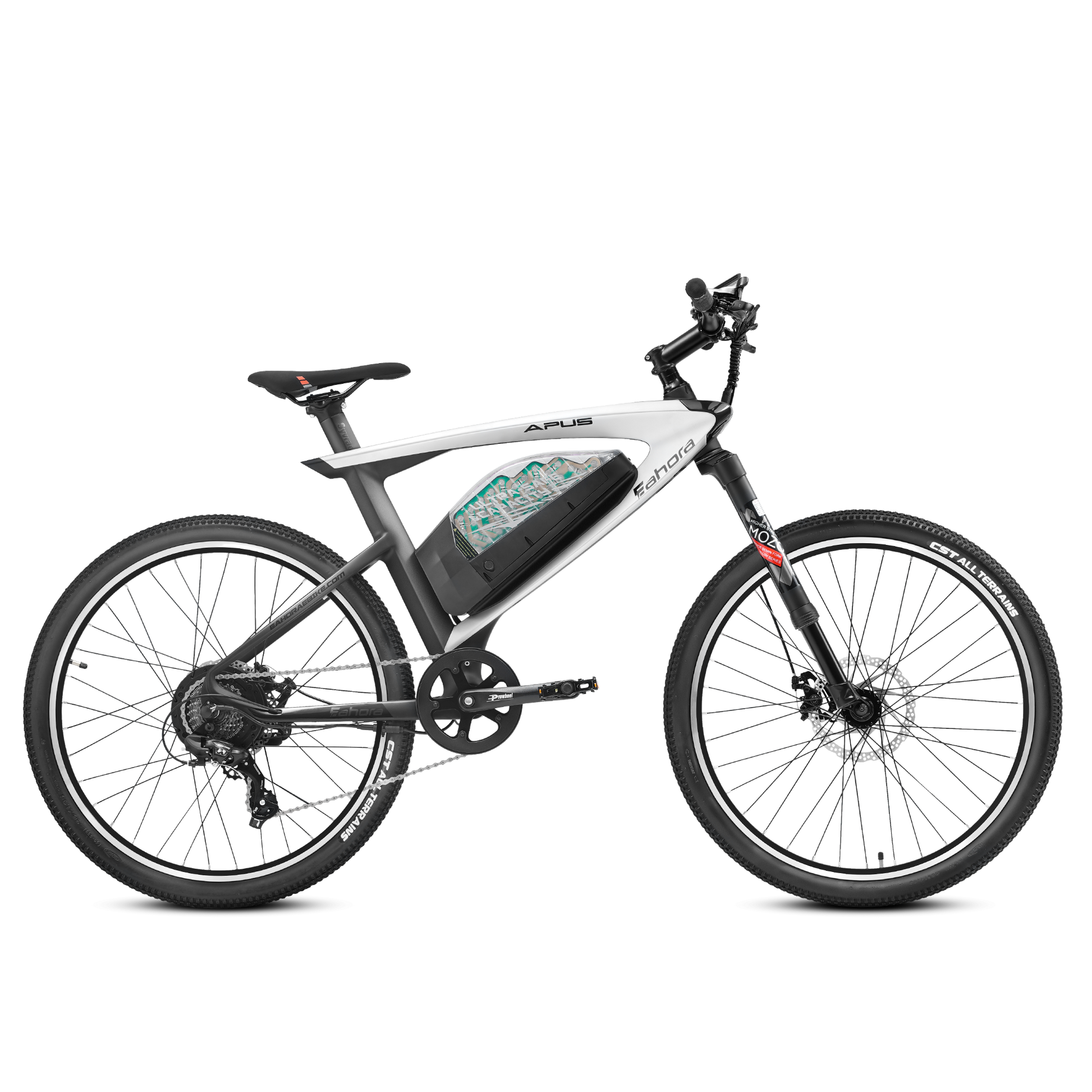 A: The Eahora APUS is a high-performance, full-suspension electric mountain bike designed for EU regulations—perfect for road, trail, or commuting.
