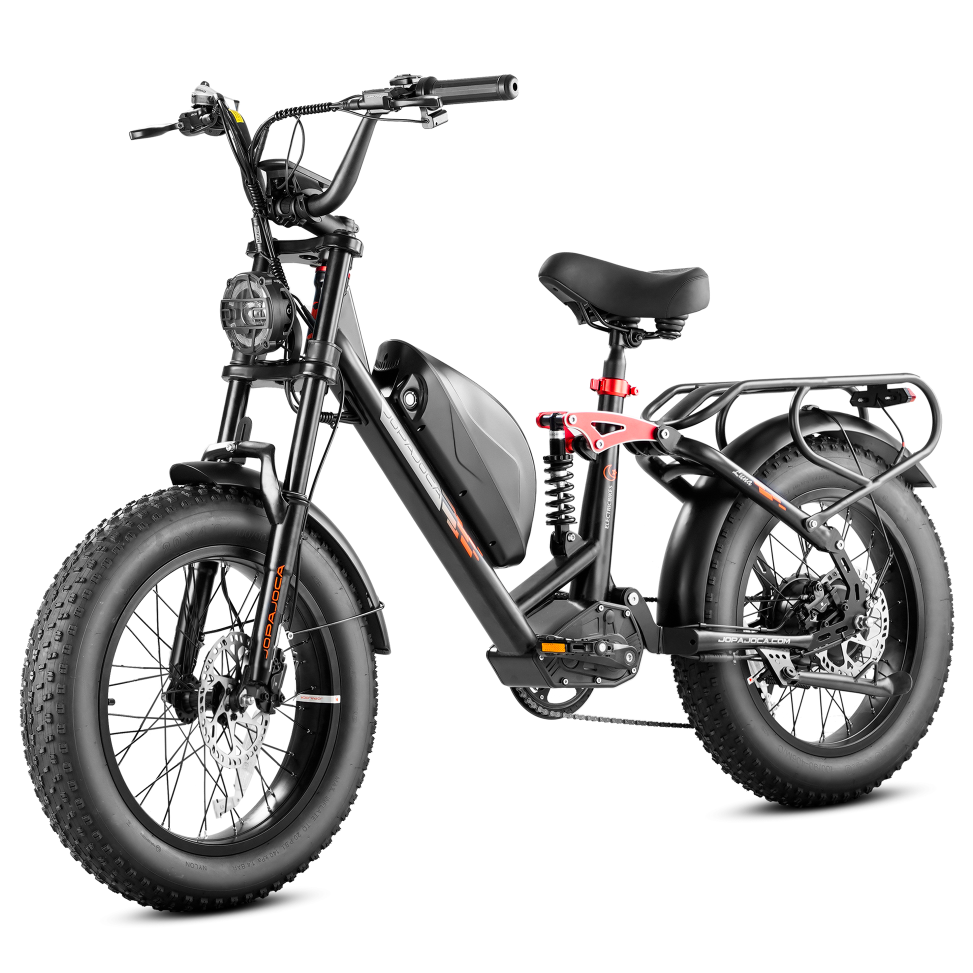 Enhanced Comfort: Designed with a full suspension system and fat tires, the Luna provides a smooth and comfortable ride across various terrains, effectively absorbing shocks and bumps.Â