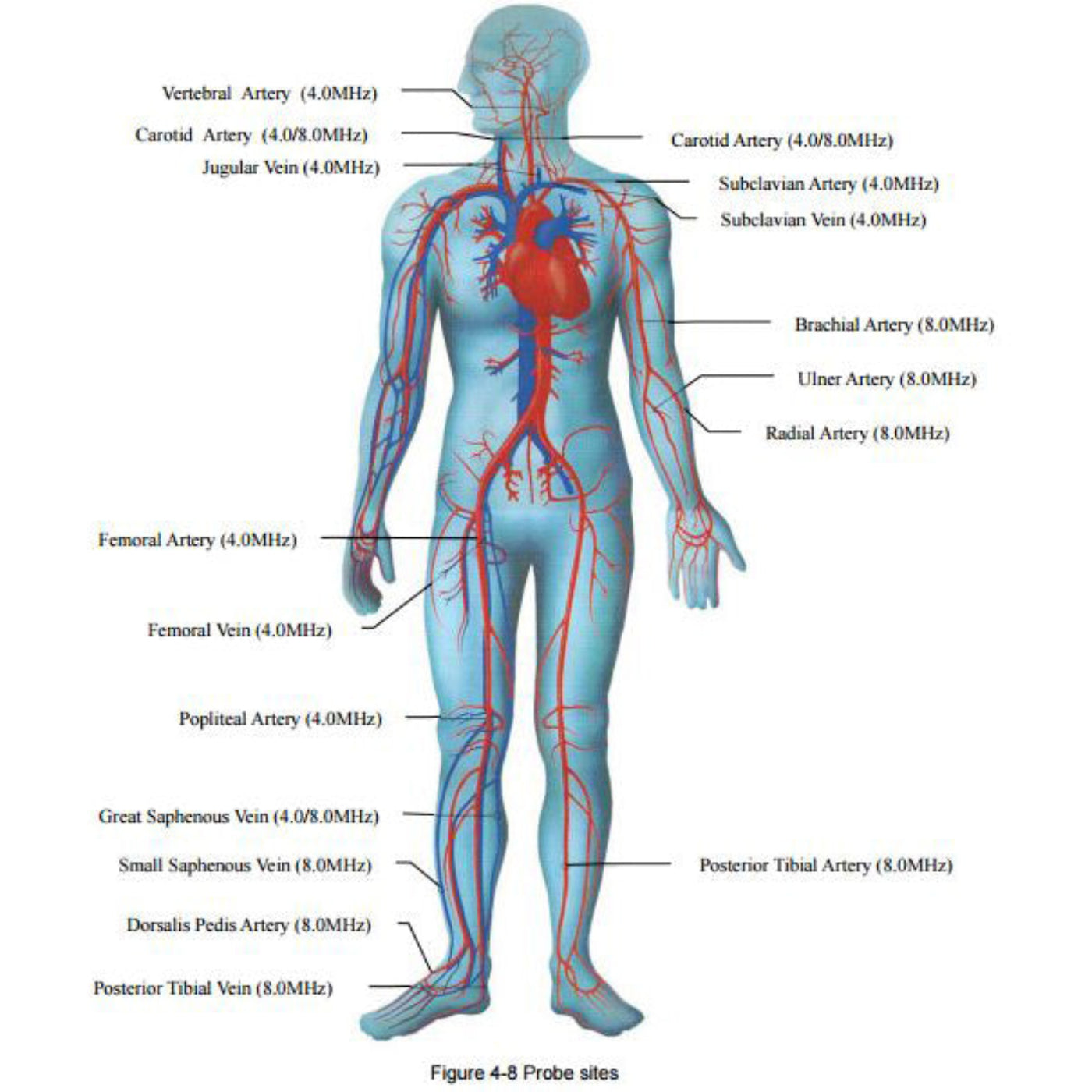 The 4, 5, and 8 MHz waterproof vascular probes are indicated for the detection of blood flow in veins and arteries for assisting in the detection of peripheral vascular disease.