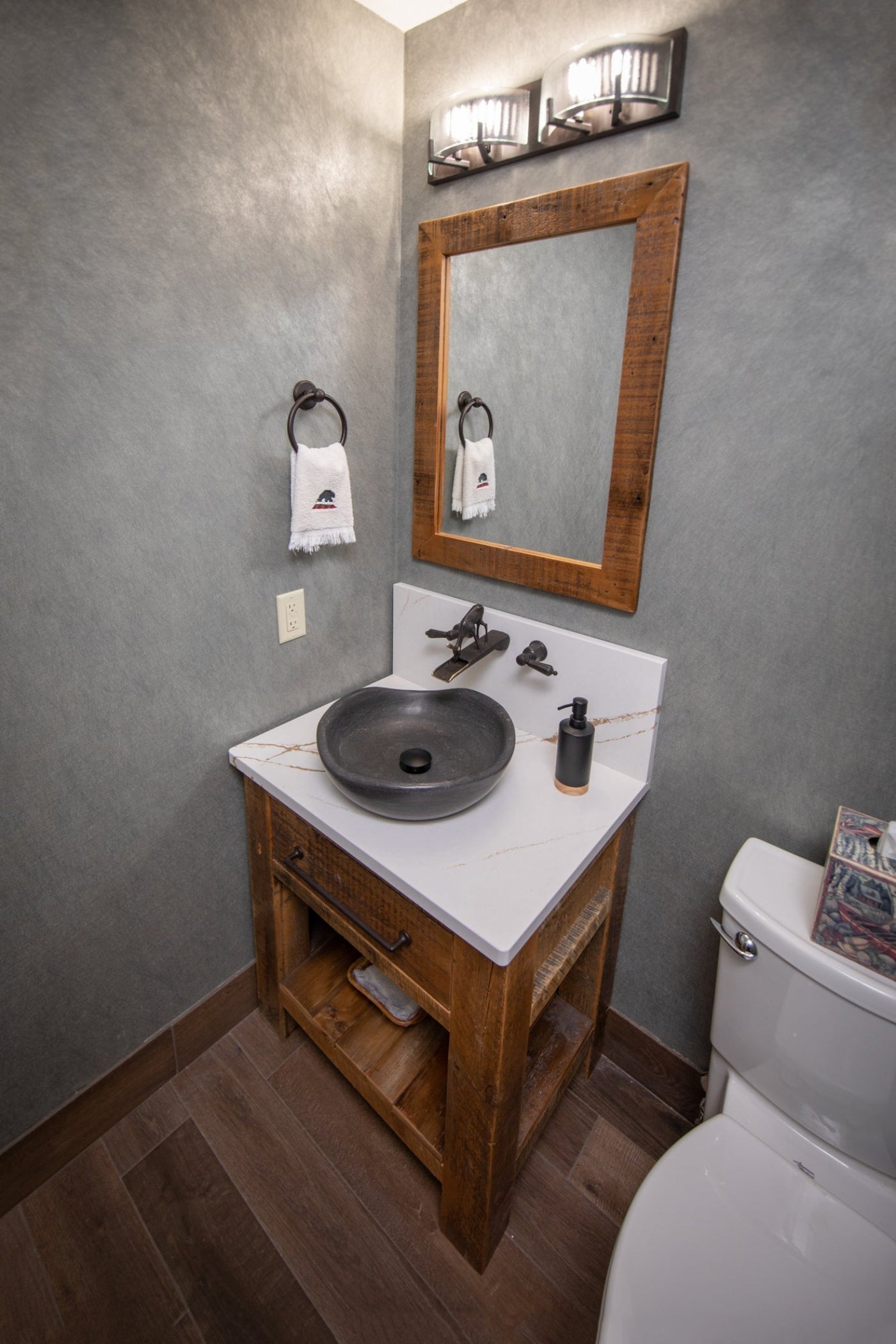 Elegant Natural Stone: Honed black limestone provides a soft, matte finish that adds an organic, sophisticated feel.