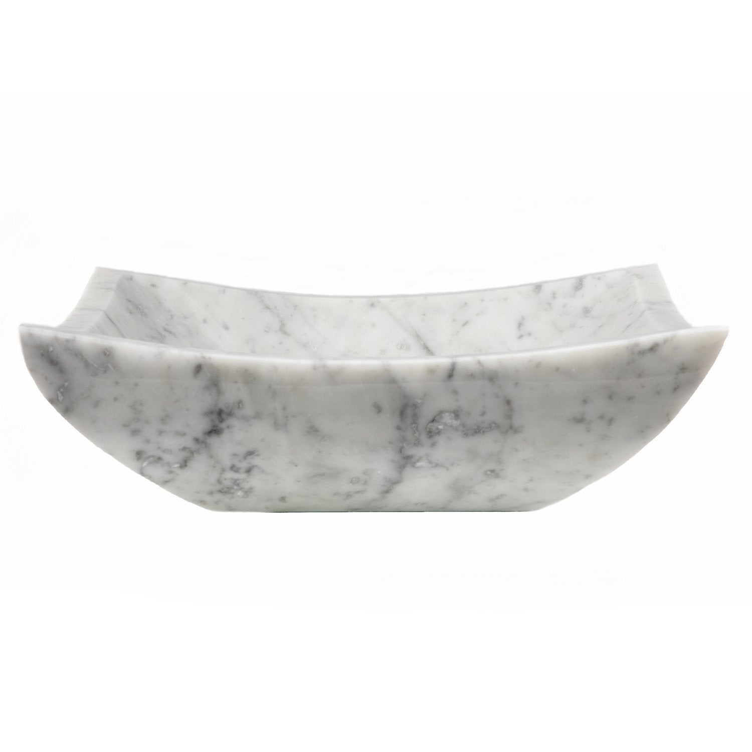 A: Clean, minimalist square design and deep zen-style bowl, combined with natural Carrara marble, make it an elegant, functional centerpiece for modern bathrooms.