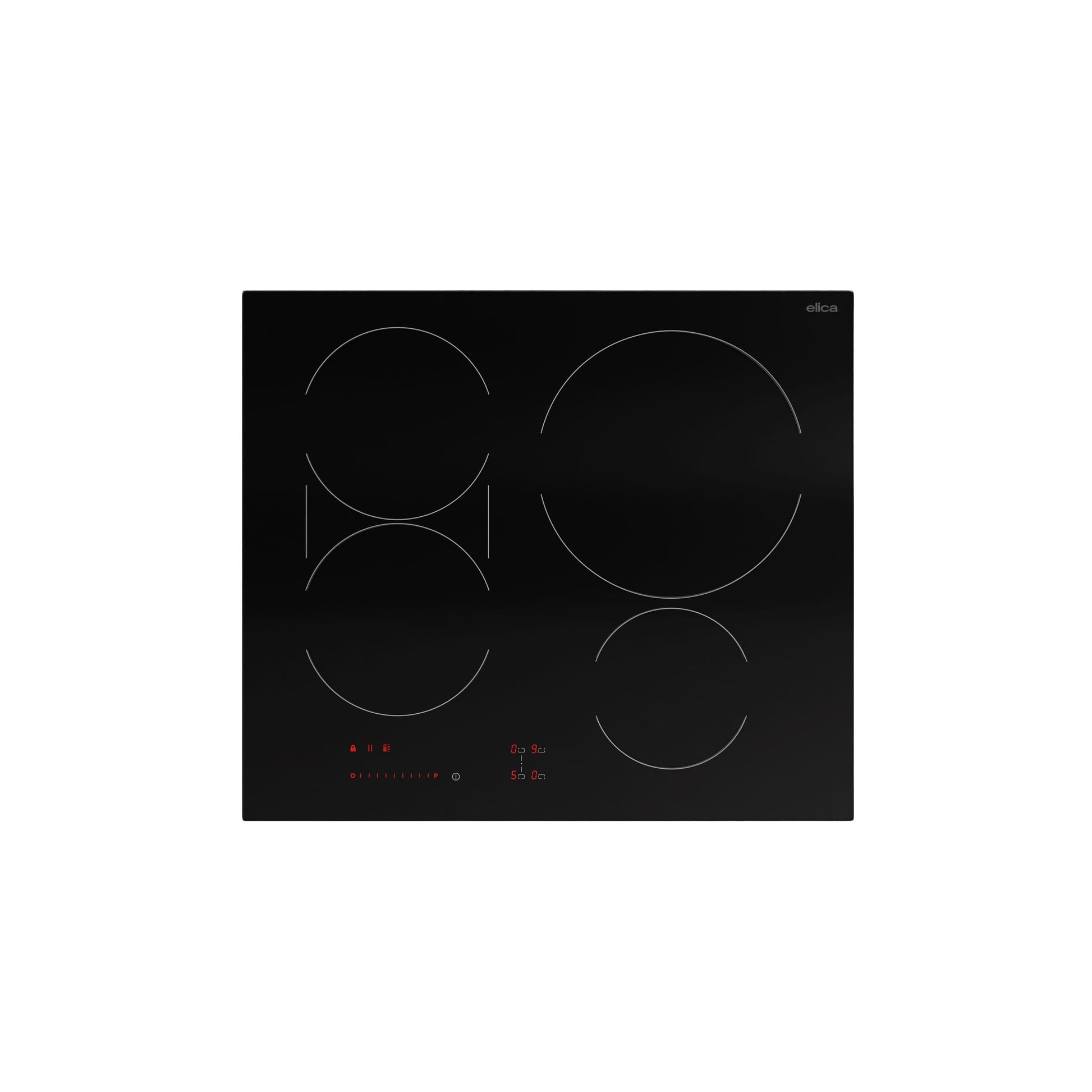 A: A 24" black-glass induction cooktop with 4 cooking zones, including a bridge zone for large cookware.