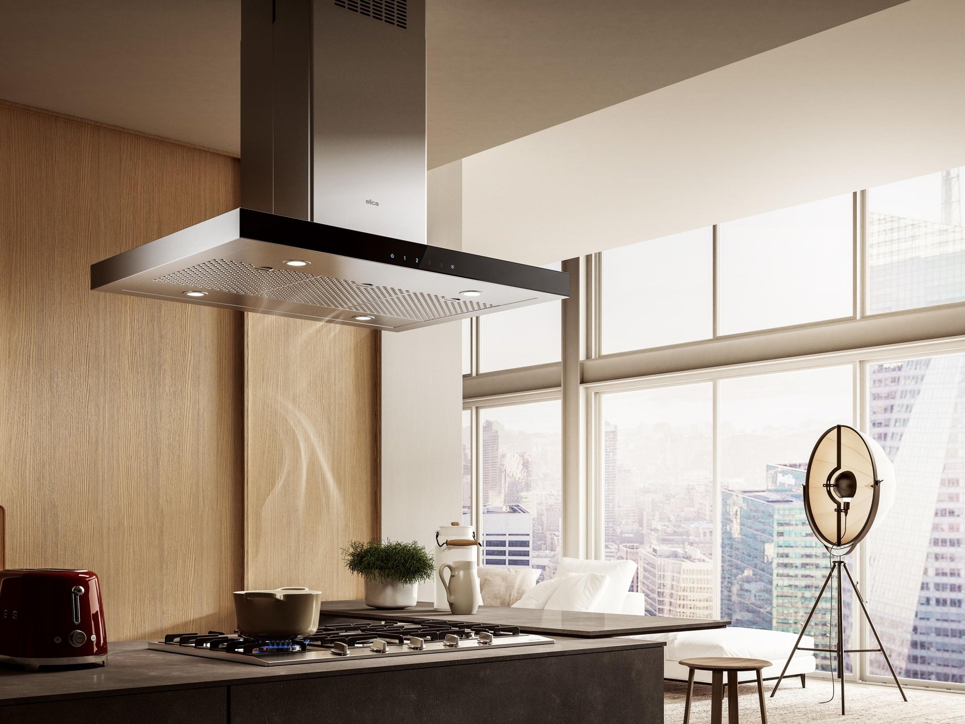 Designed for island mounting with adaptable ducting options, it accommodates a variety of ceiling heights.