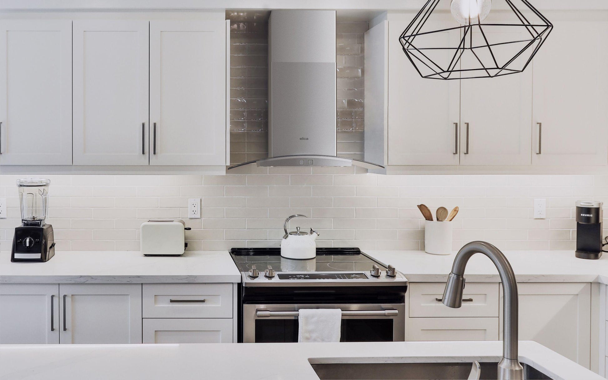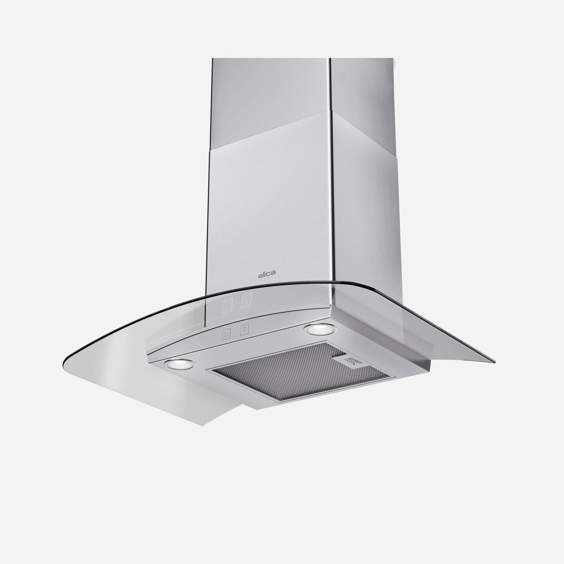 The Potenza features a curved glass canopy and stainless-steel body, offering a clean, contemporary look for any kitchen.
